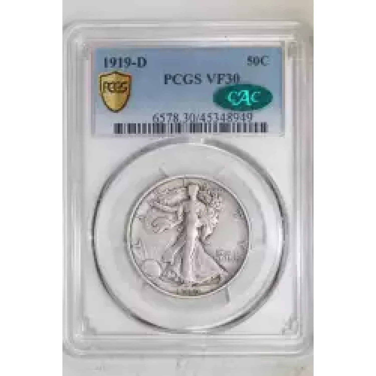 520552 | 1919-D Half Dollars Liberty Walking PCGS VF-30 CAC | PCGS | VF-30 | Sold: 18/12/2023 | $895 |
