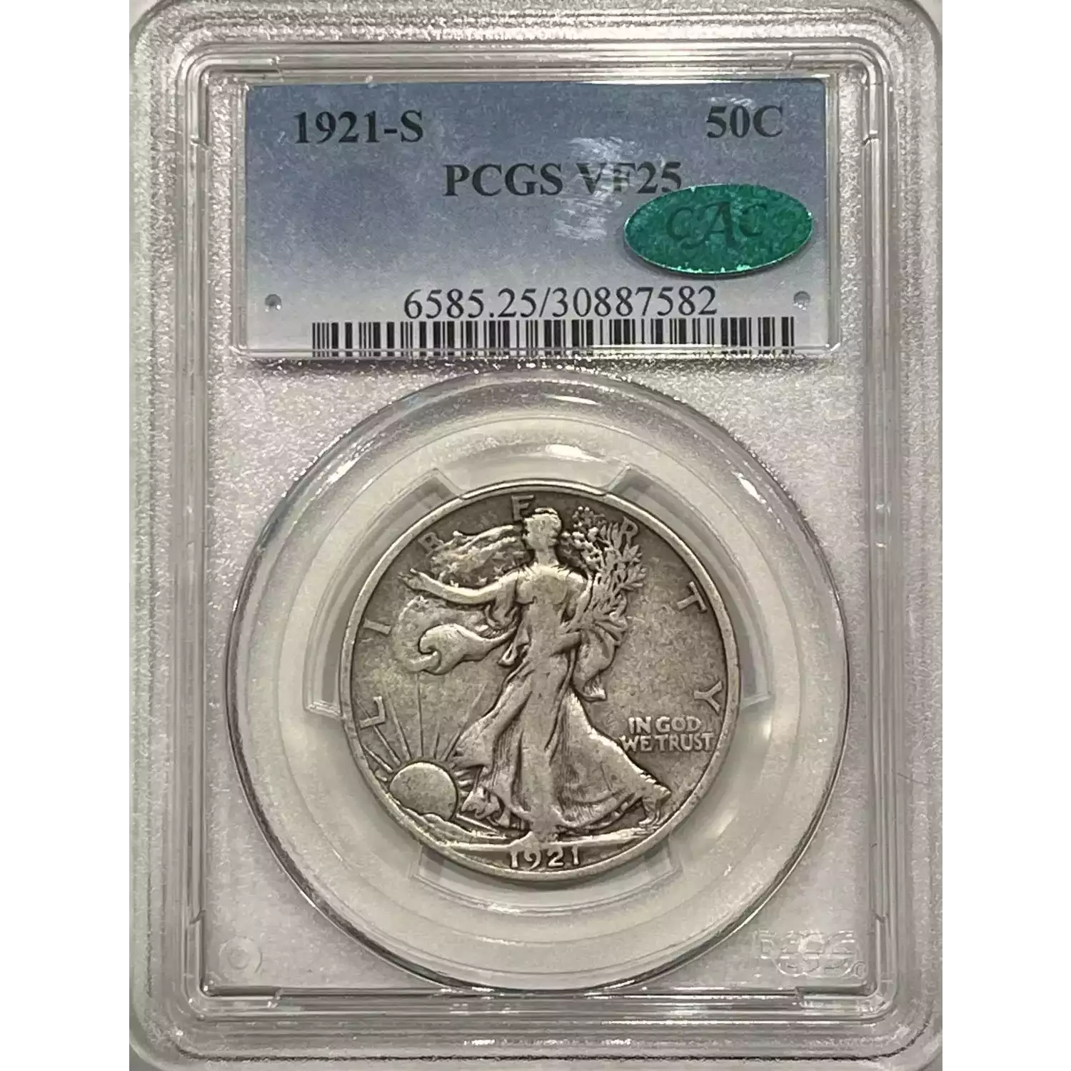 523719 | 1921-S Half Dollars Liberty Walking PCGS VF-25 | PCGS | VF-25 | Sold: 06/12/2024 | $1,400 |