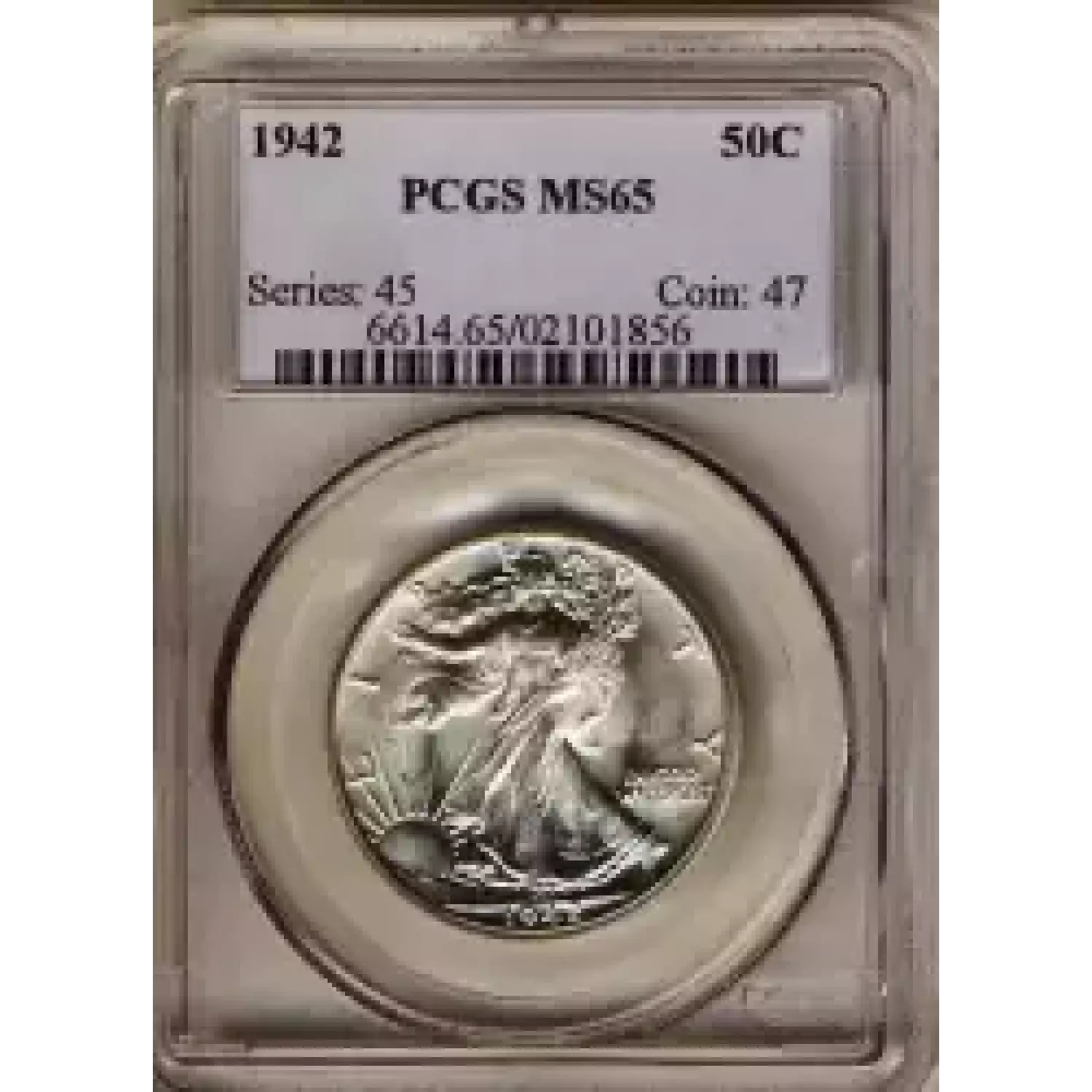 504614 | 1942-PR-65 Half Dollars Liberty Walking PCGS PR-65 | PCGS | PR-65 | Sold: 04/02/2012 | $675 |