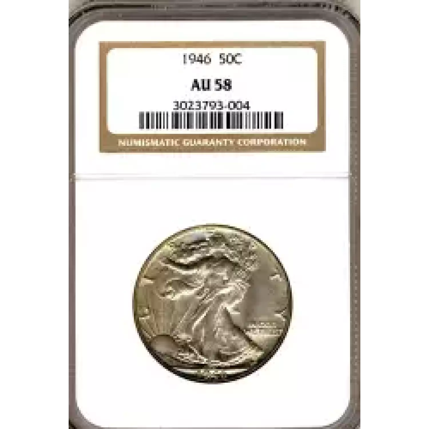 504030 | 1946-AU-58 Half Dollars Liberty Walking NGC AU-58 | NGC | AU-58 | Sold: 29/10/2007 | $28 |