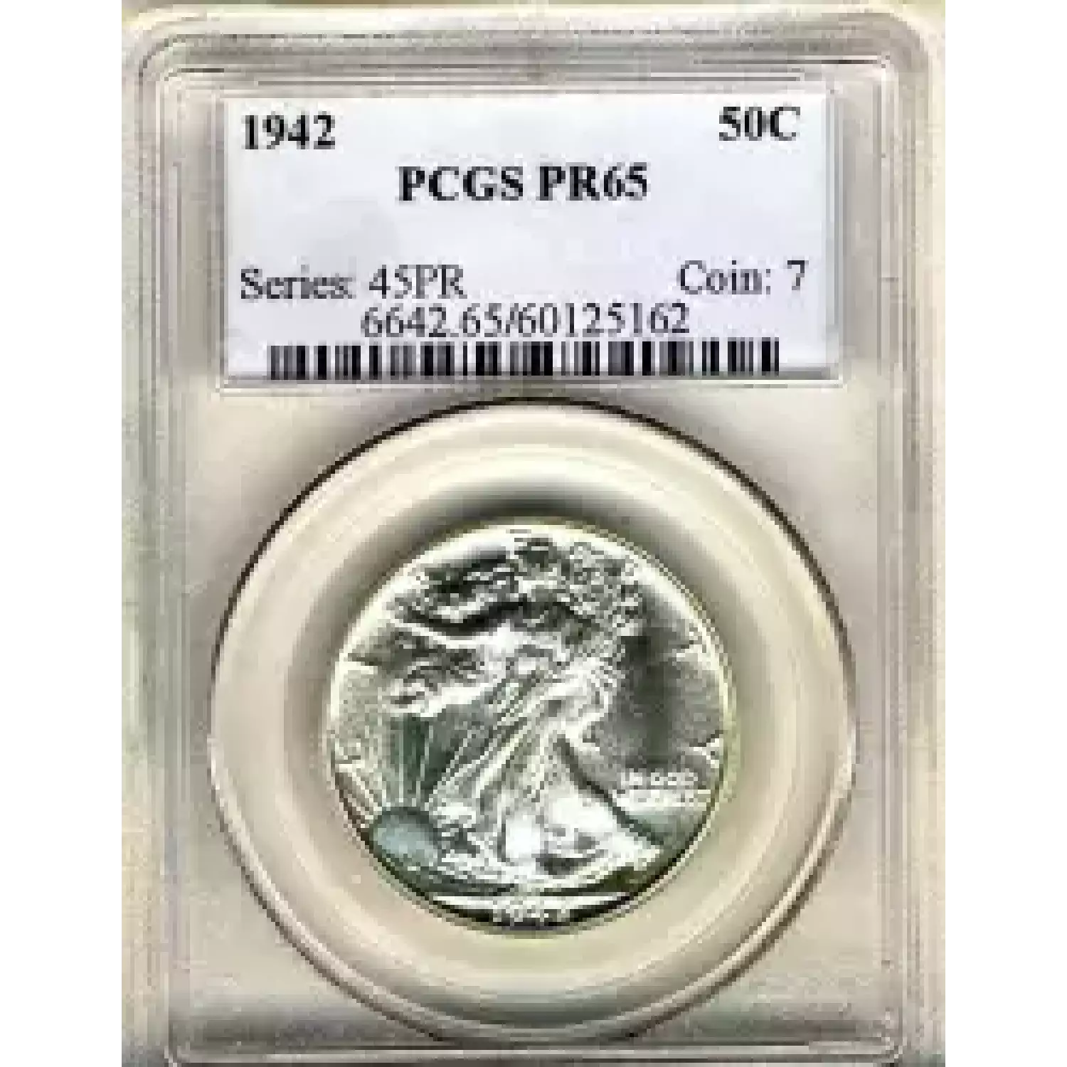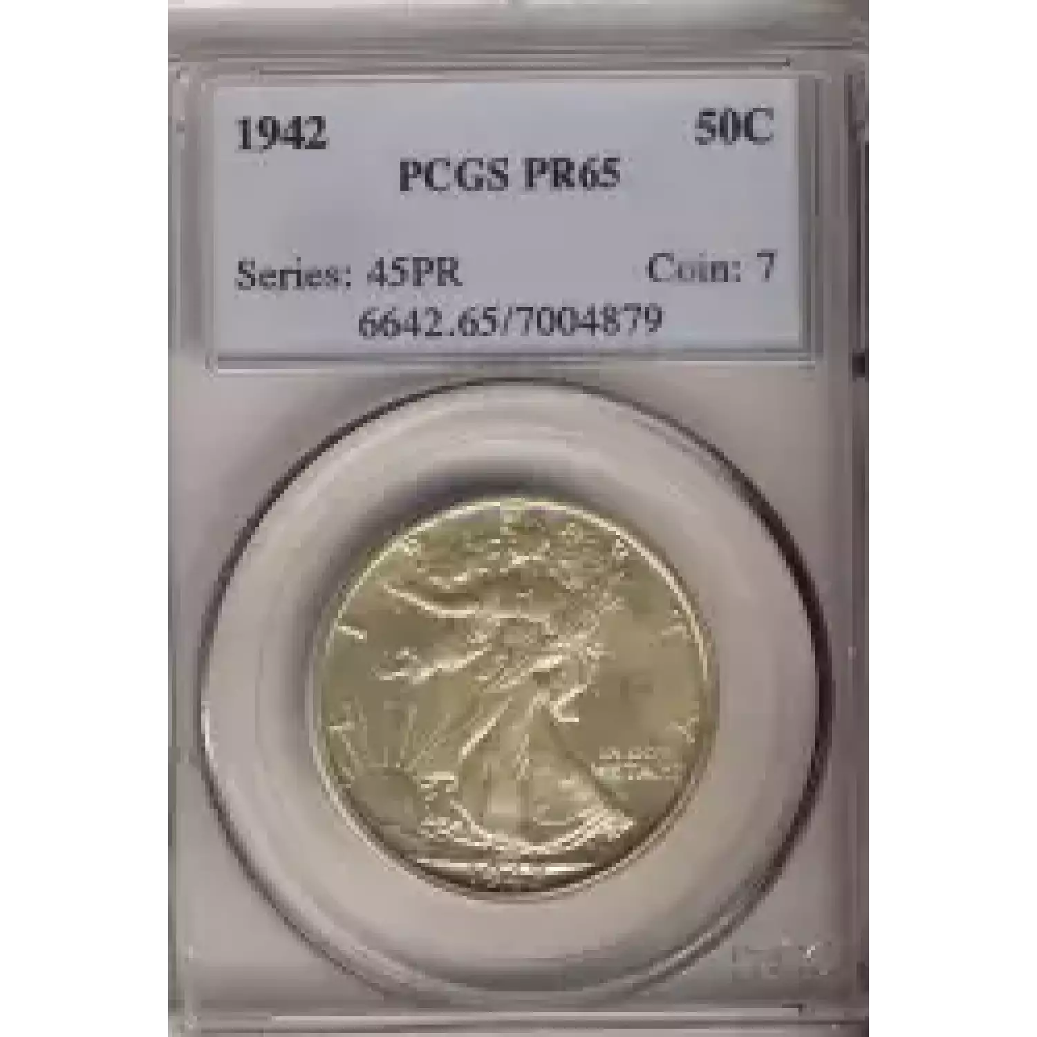 504403 | 1942-PR-65 Half Dollars Liberty Walking PCGS PR-65 | PCGS | PR-65 | Sold: 01/10/2008 | $700 |