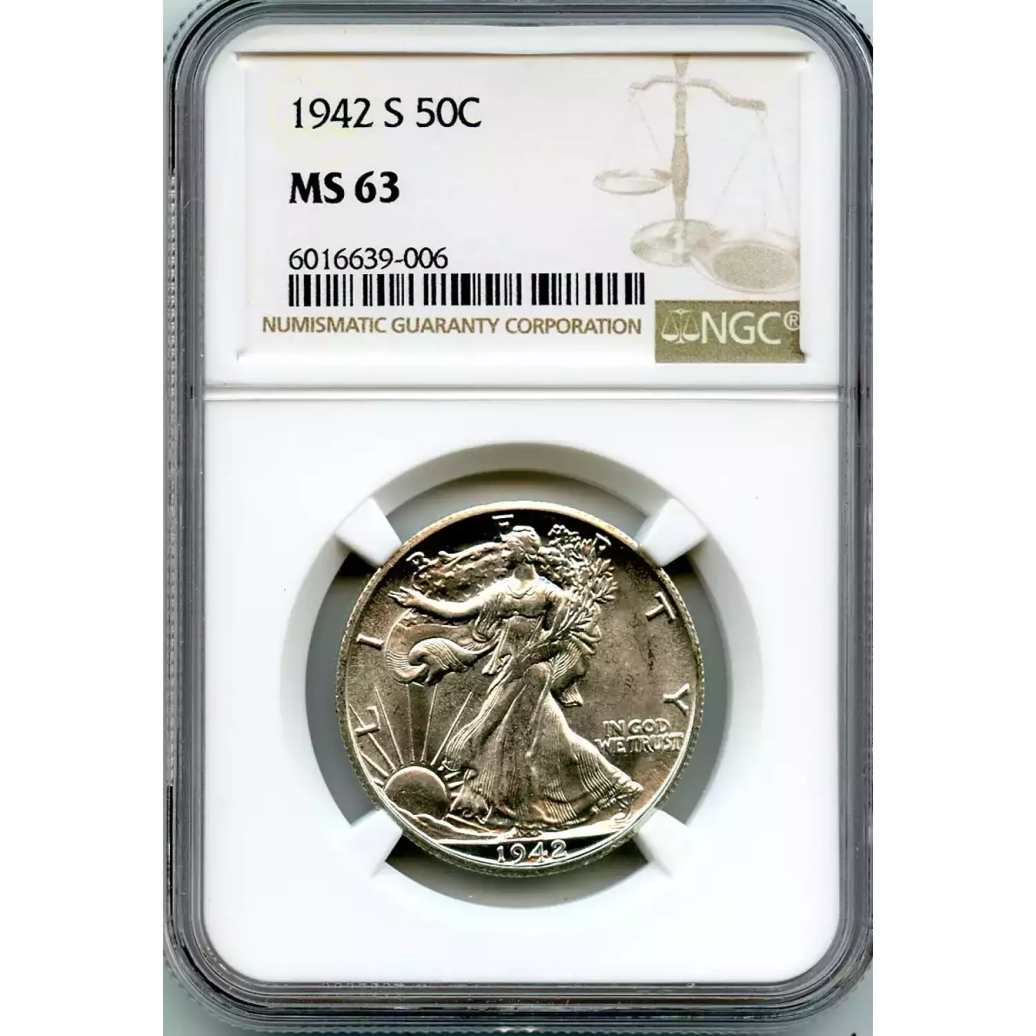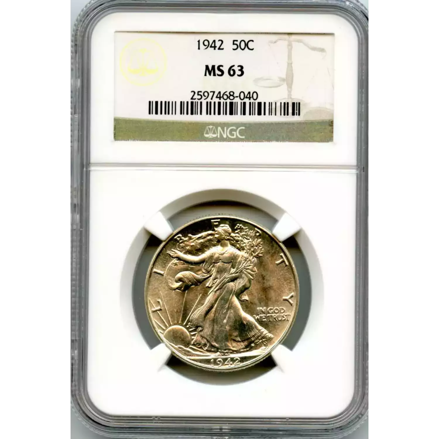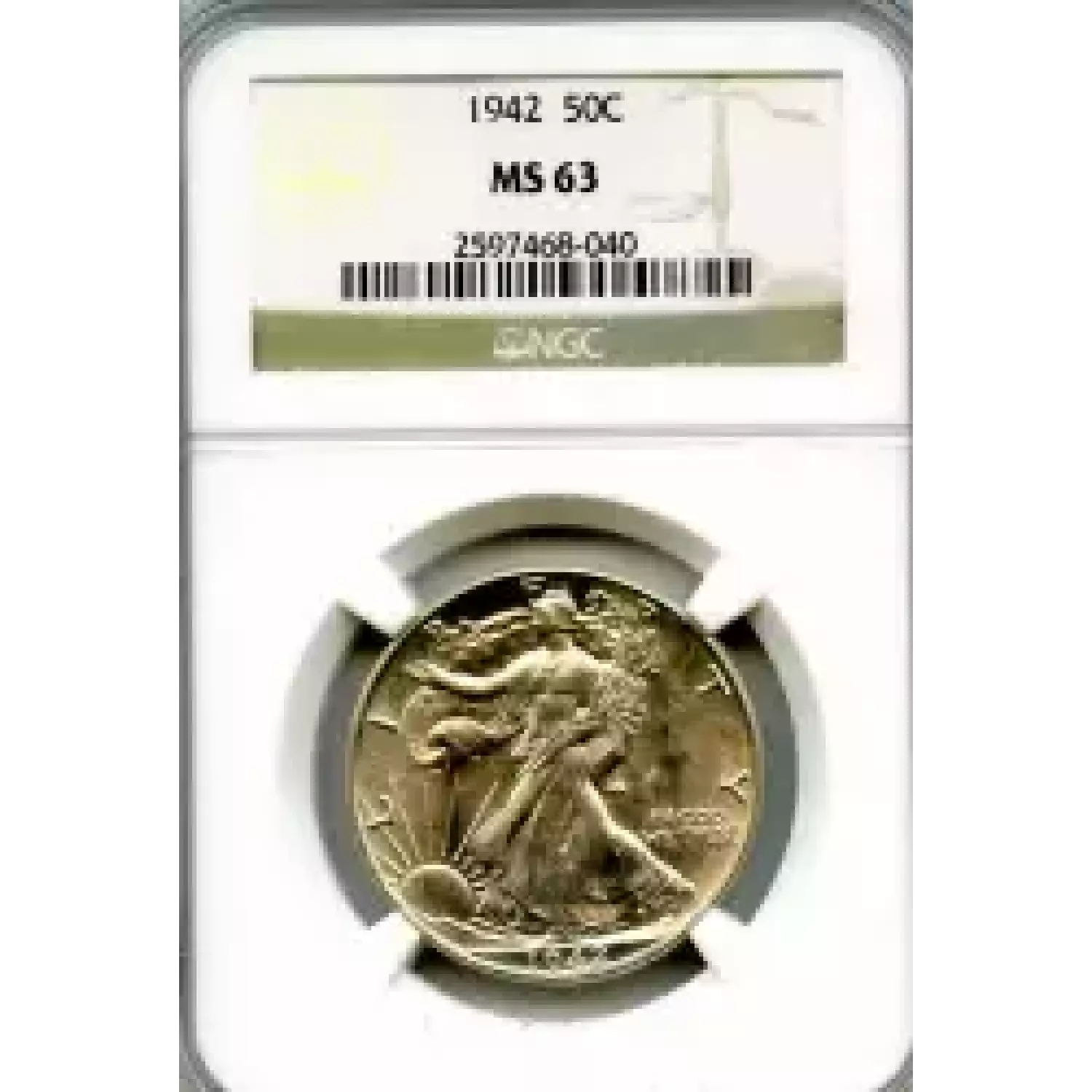 506481 | 1942-MS-63 Half Dollars Liberty Walking NGC MS-63 | NGC | MS-63 | Sold: 16/06/2013 | $75 |