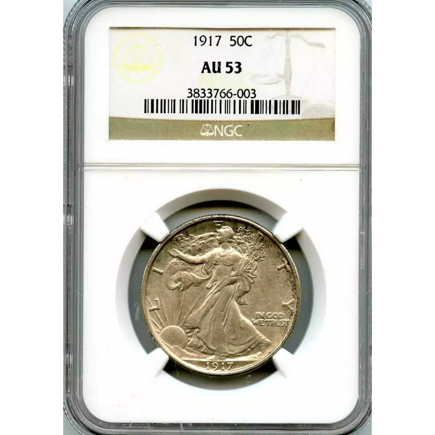 507167 | 1917-AU-53 Half Dollars Liberty Walking NGC AU-53 | NGC | AU-53 | Sold: 15/06/2014 | $80 |