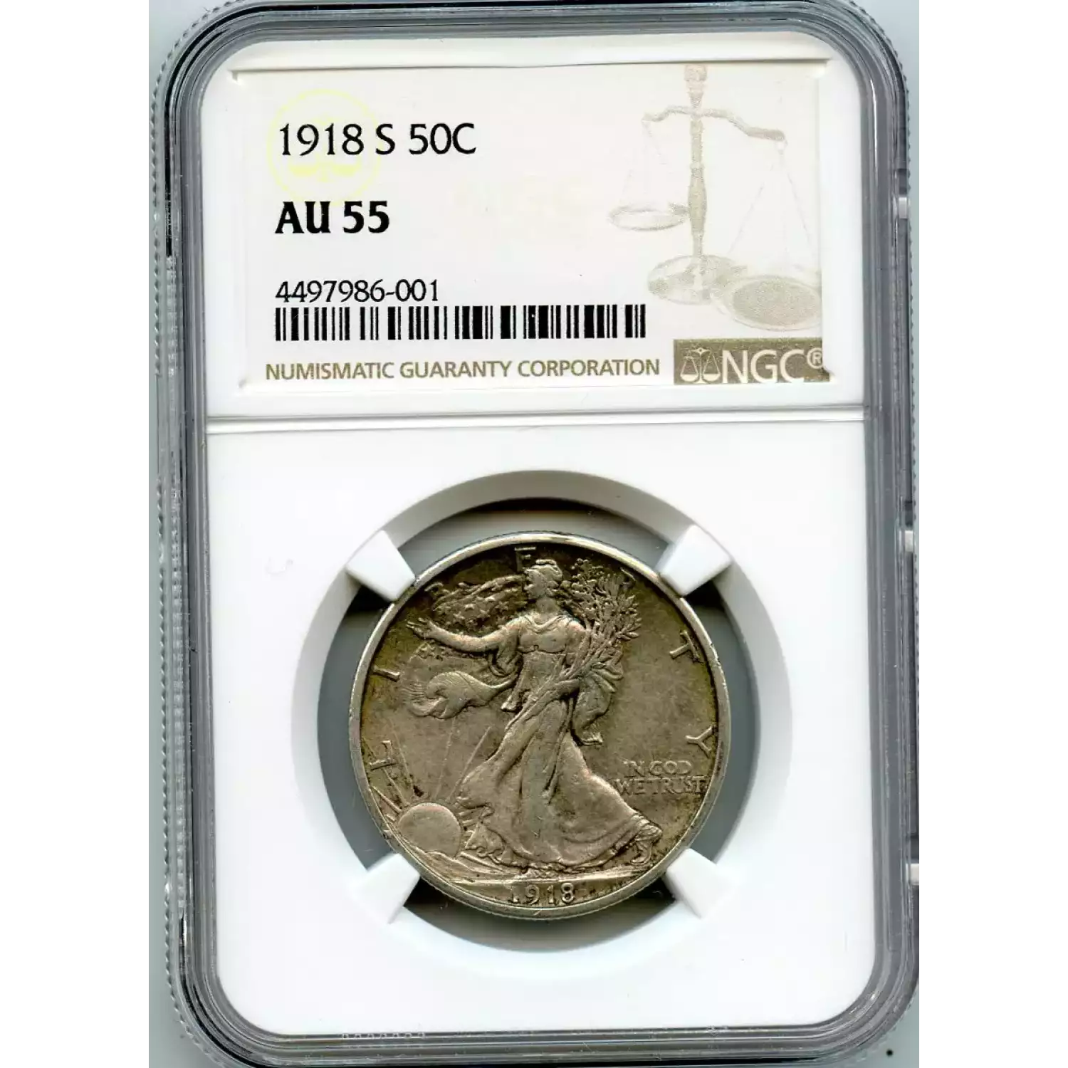512477 | 1918-AU-55 Half Dollars Liberty Walking NGC AU-55 | NGC | AU-55 | Sold: 01/03/2019 | $250 |