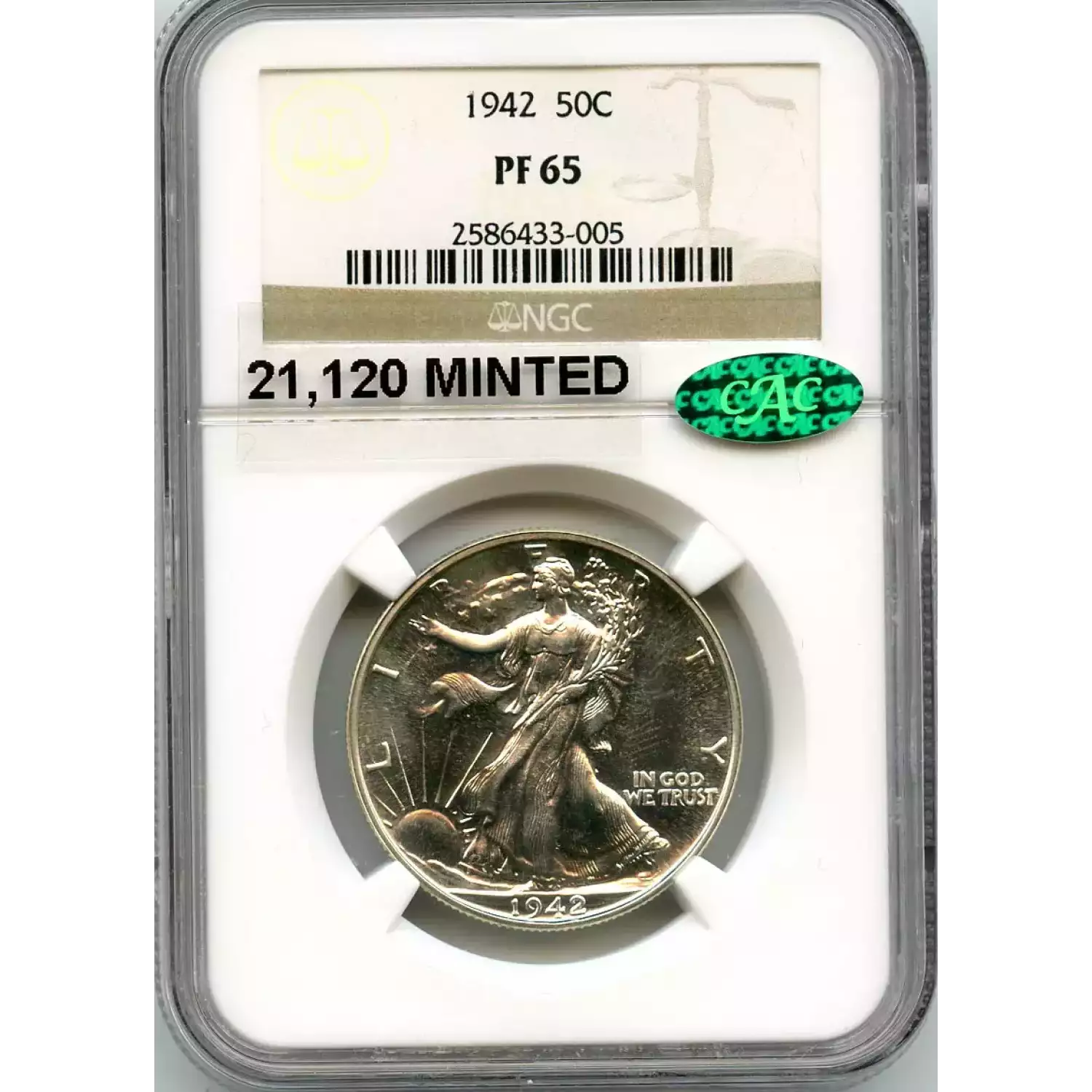 513041 | 1942-PR-65 Half Dollars Liberty Walking NGC PR-65 CAC | NGC | PR-65 | Sold: 01/12/2019 | $472.50 |