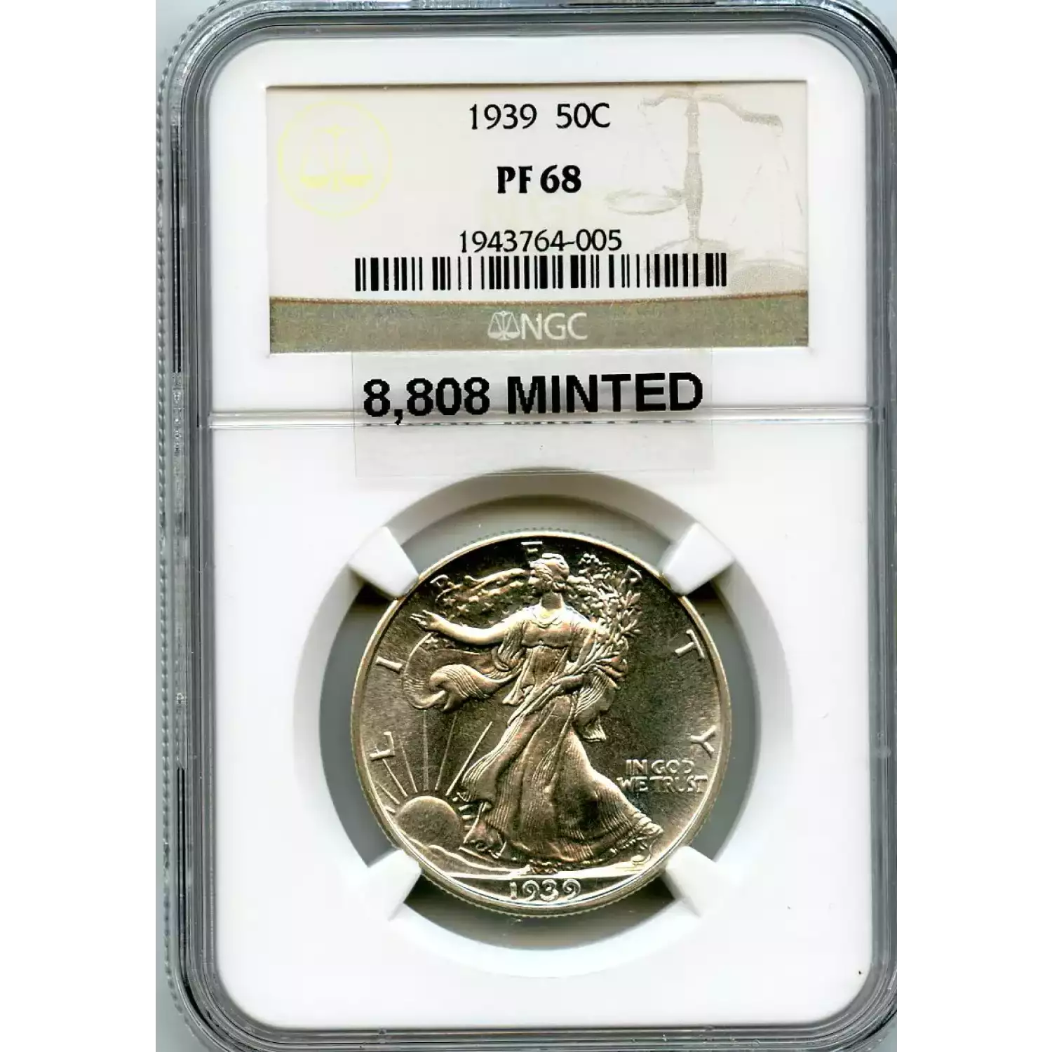 513056 | 1939-PR-68 Half Dollars Liberty Walking NGC PR-68 | NGC | PR-68 | Sold: 01/09/2019 | $3,100 |