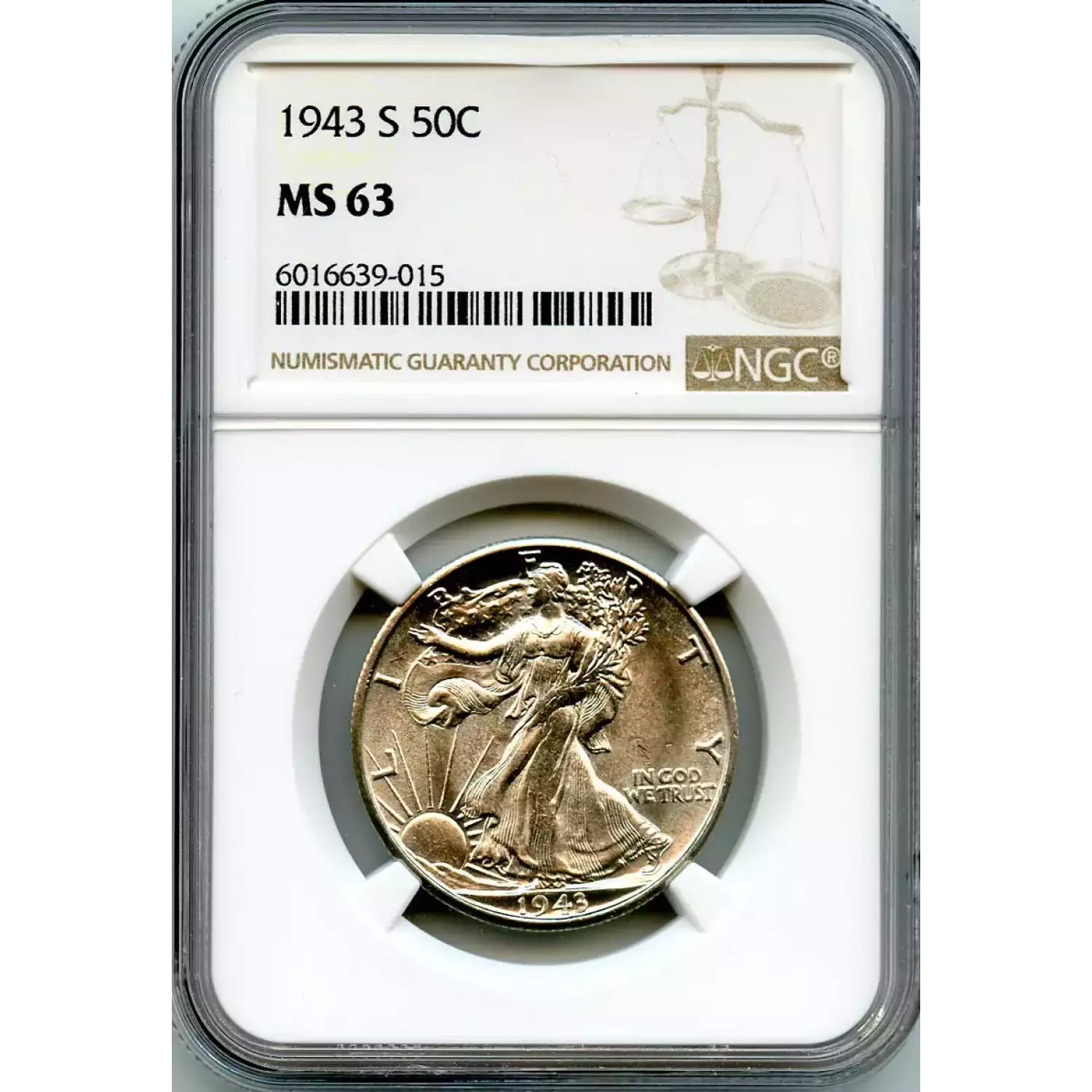 517797 | 1943-S Half Dollars Liberty Walking PCGS MS-65 | PCGS | MS-65 | Sold: 11/09/2023 | $220 |