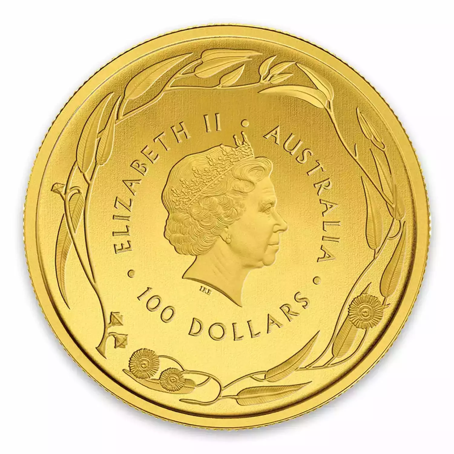 The Royal Australian Mint is proud to present the stunning Kangaroo gold investment series, distributed by PAMP. The Royal Australian Mint 1 oz Kangaroo is made from 0.9999 fine gold with a weight of one troy oz and bears a face value of 100 AUD. The Obverse of the coin features a profile of Queen Elizabeth II created by Ian Rank-Broadley.