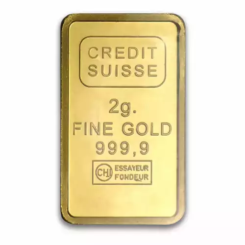 The 2g Credit Suisse Gold Bullion Bar contains 2 grams of .9999 fine gold. These stunning gold bars feature an image of the Statue of Liberty on one side.