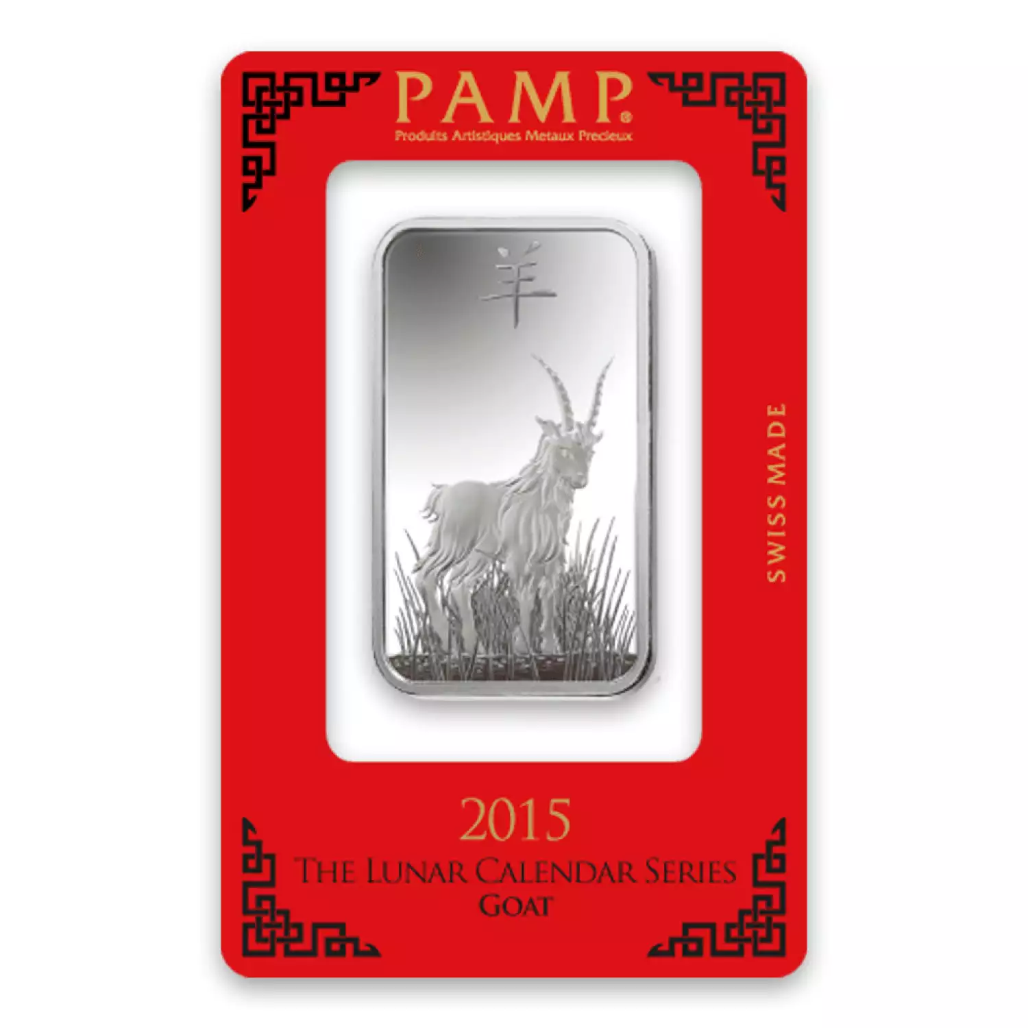 Buy the high-quality, magnificent 1 oz PAMP Silver Bar - Lunar Goat today from us online! The latest silver price is updated on our website every minute.
