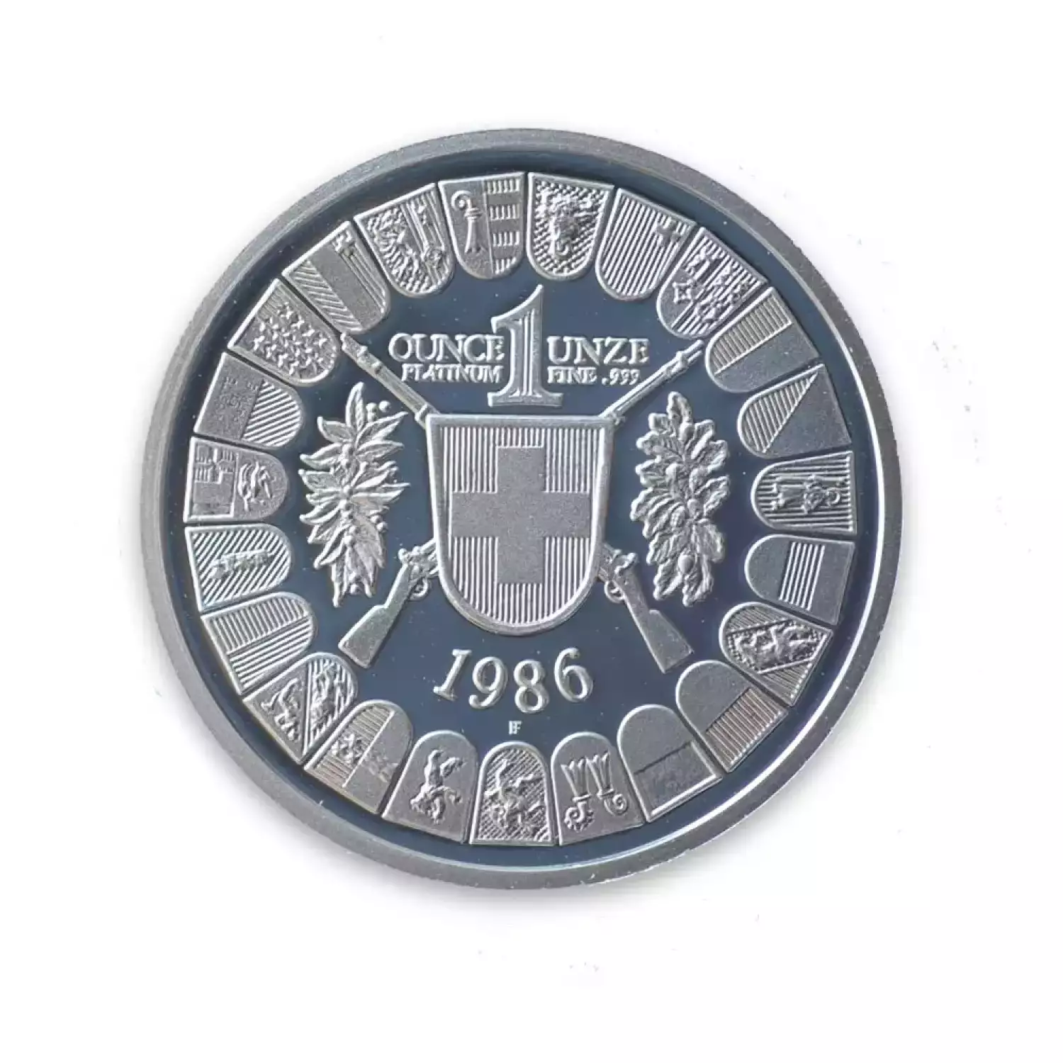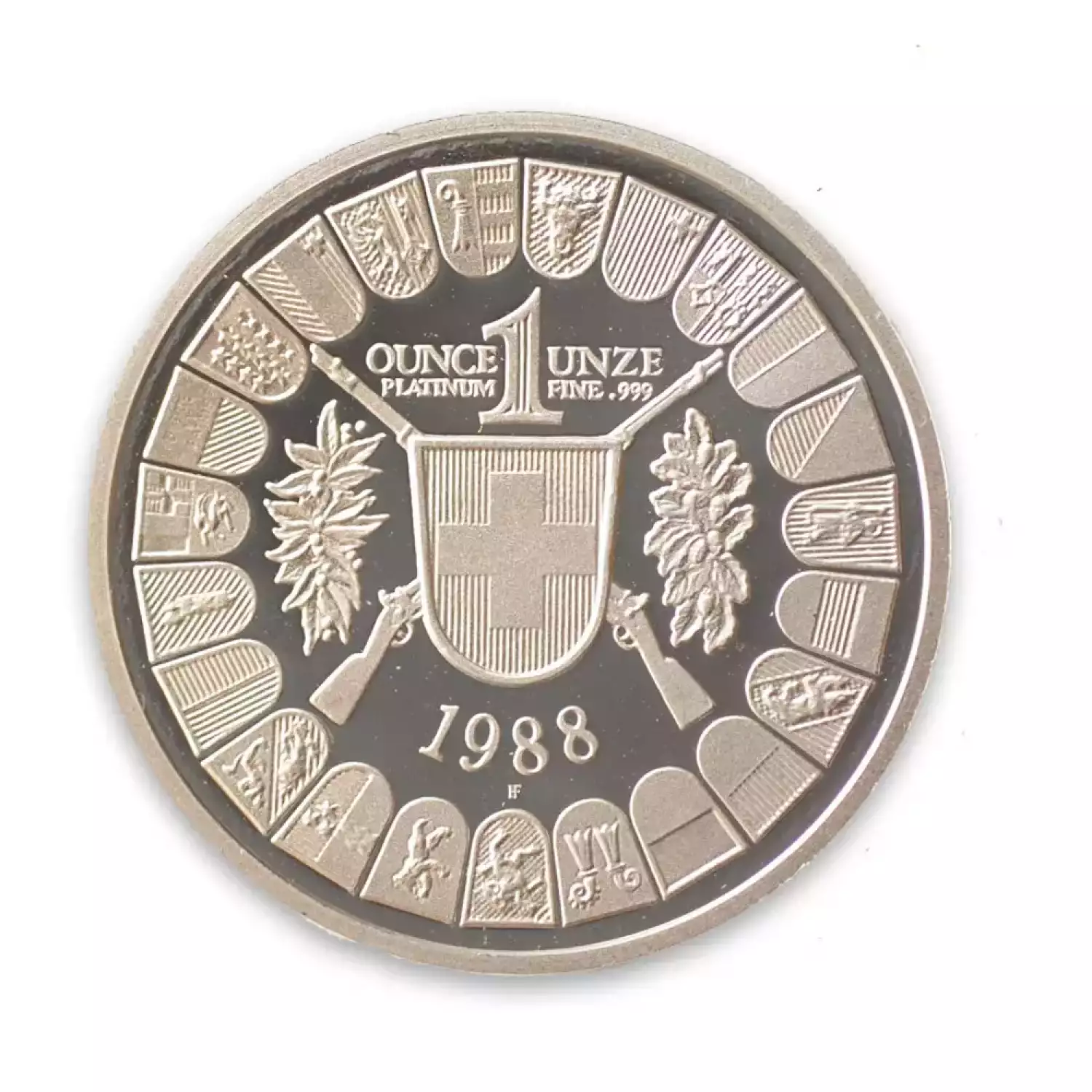 Buying platinum bullion is easy with us. Platinum is one of the easiest metals to identify given its density is even greater than gold, which makes it almost impossible to counterfeit well. The design on these platinum coins is very detailed and appealing. If you are interested in investing in platinum coins, then the Swiss Platinum Shooting Thaler is an excellent choice.