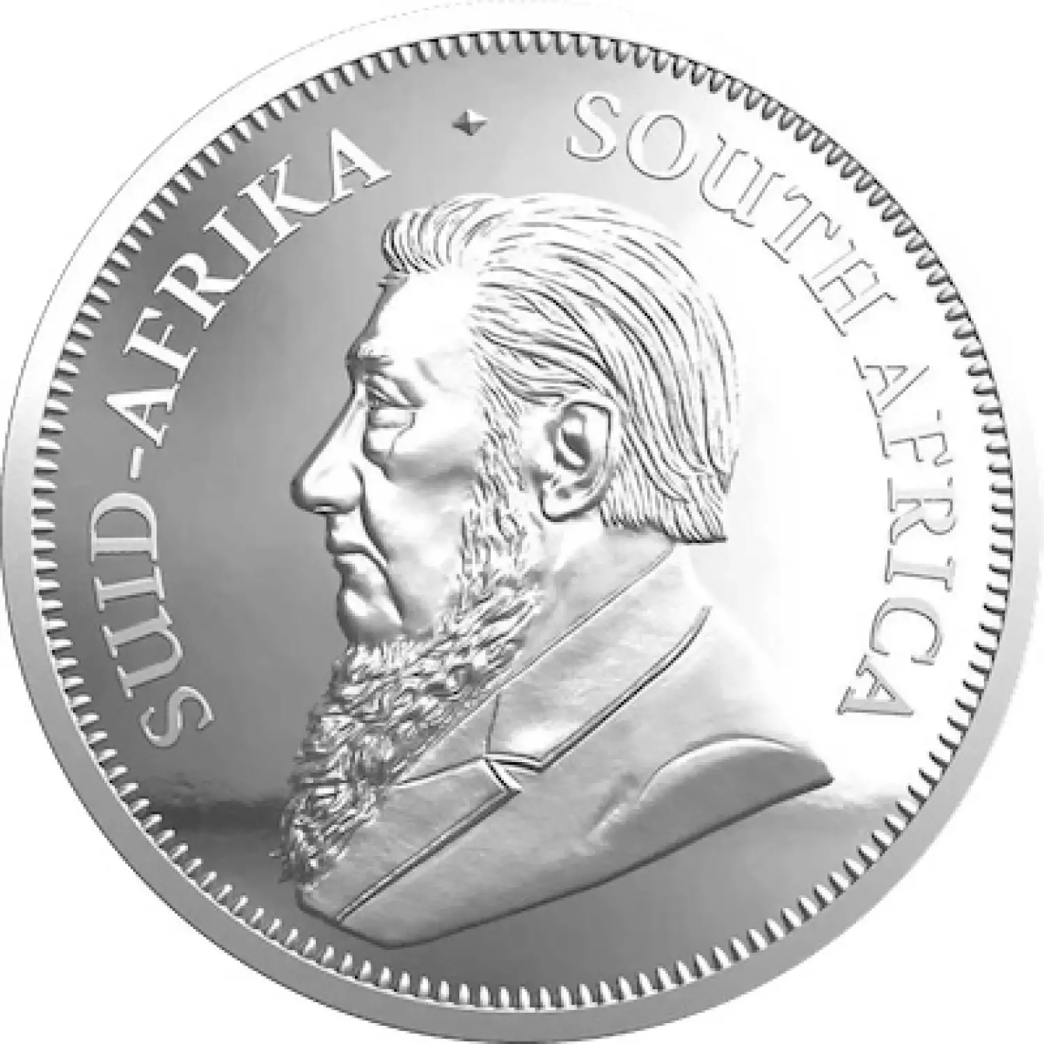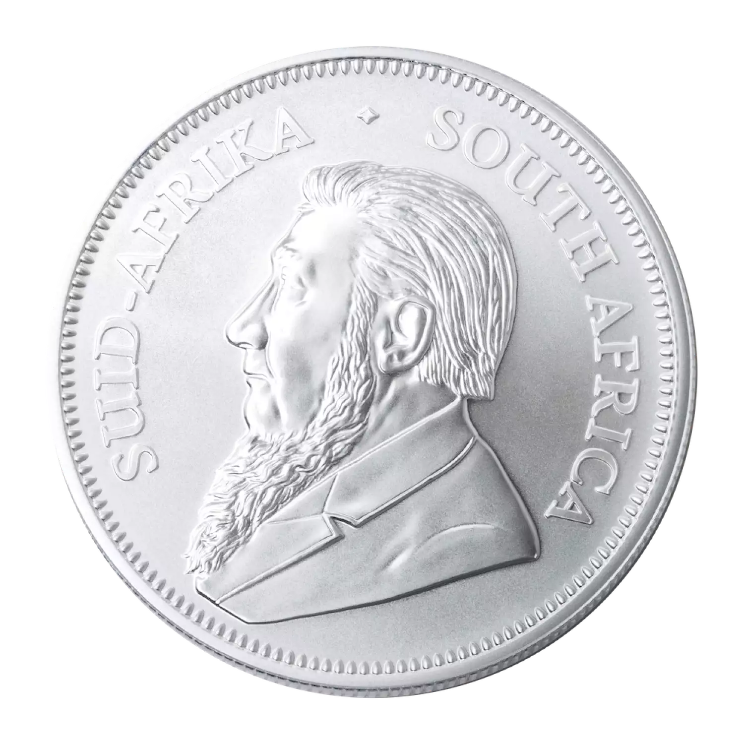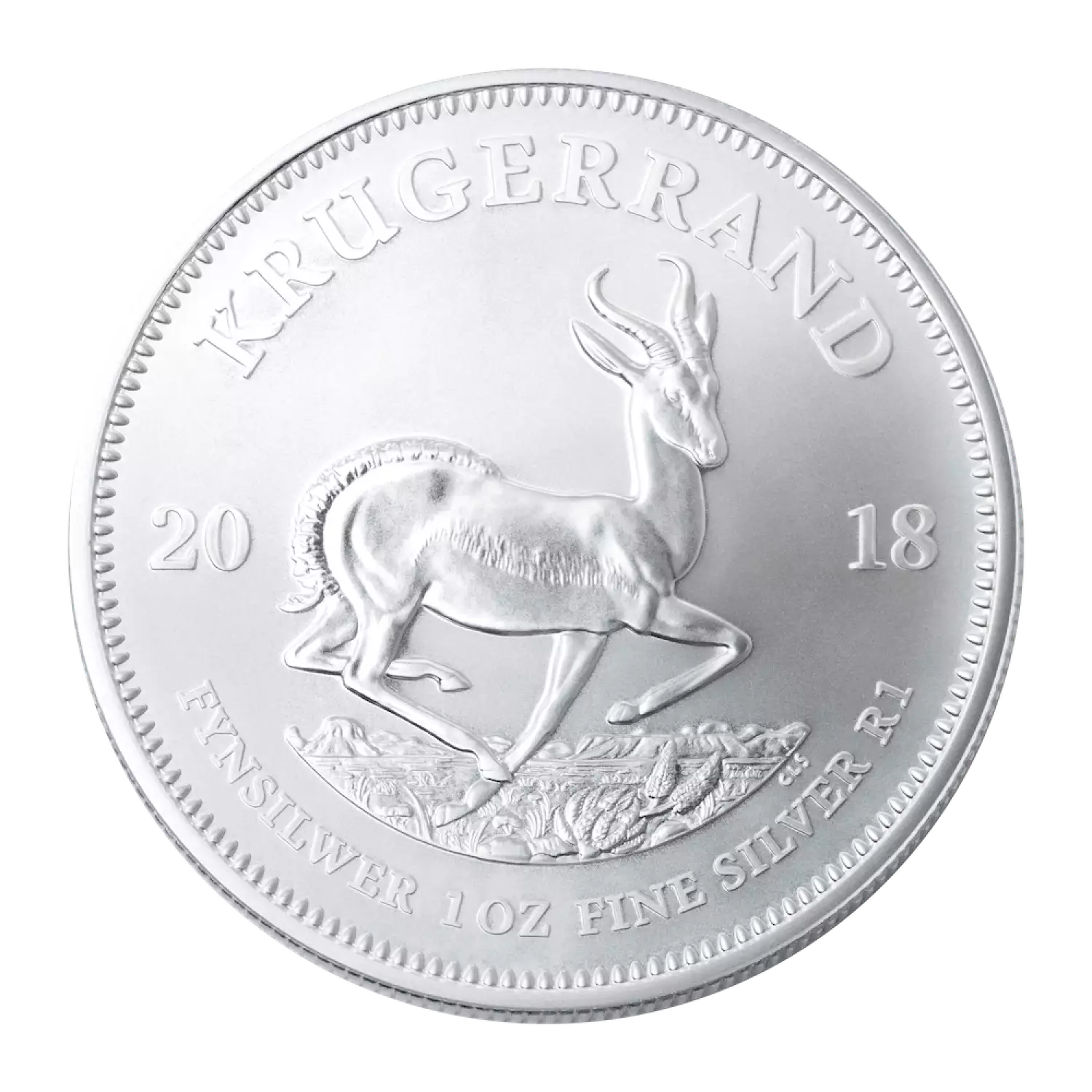 The reverse of this silver coin is the springbok, South Africa’s national animal. The Springbok or Antidorcas marsupialis is characteristic for its jumping ability. Modeled by the renowned South African sculptor, Coert Steynberg. On the obverse of the coin is Paul Kruger, South Africa's famous leader. The word "Krugerrand" is derived from Paul Kruger and the rand, the monetary unit of South Africa, which is associated with the Witwatersrand ‚the ridge of white water‘ – the gold producing area discovered in 1886 in South Africa.