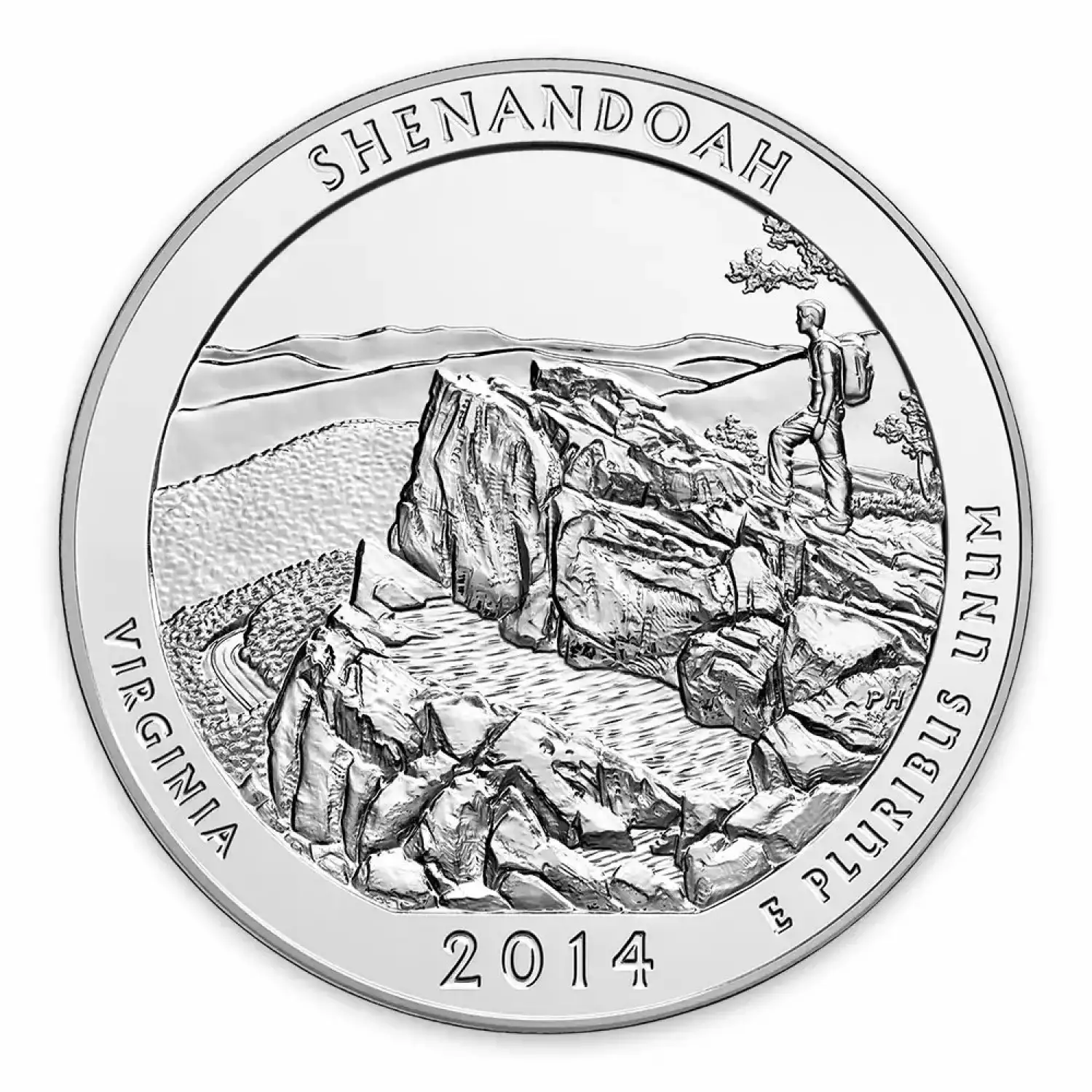 Since 2010, the US Mint released five silver America the Beautiful coins annually. The 5oz silver coins will be complete in 2021, each representing a historical monument or a treasured national park. These bullion coins were introduced following the success of the state quarter program.Shenandoah National Park is a national park that encompasses part of the Blue Ridge Mountains in the U.S. state of Virginia. The park is long and narrow, with the broad Shenandoah River and Valley on the west side, and the rolling hills of the Virginia Piedmont on the east.