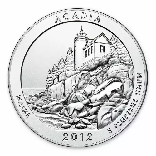 Since 2010, the US Mint released five silver America the Beautiful coins annually. The 5oz silver coins will be complete in 2021, each representing a historical monument or a treasured national park. These bullion coins were introduced following the success of the state quarter program.Acadia National Park is an American national park located in the state of Maine, southwest of Bar Harbor. The park preserves about half of Mount Desert Island, many adjacent smaller islands, and part of the Schoodic Peninsula on the coast of Maine. Acadia was initially designated Sieur de Monts National Monument by proclamation of President Woodrow Wilson in 1916.