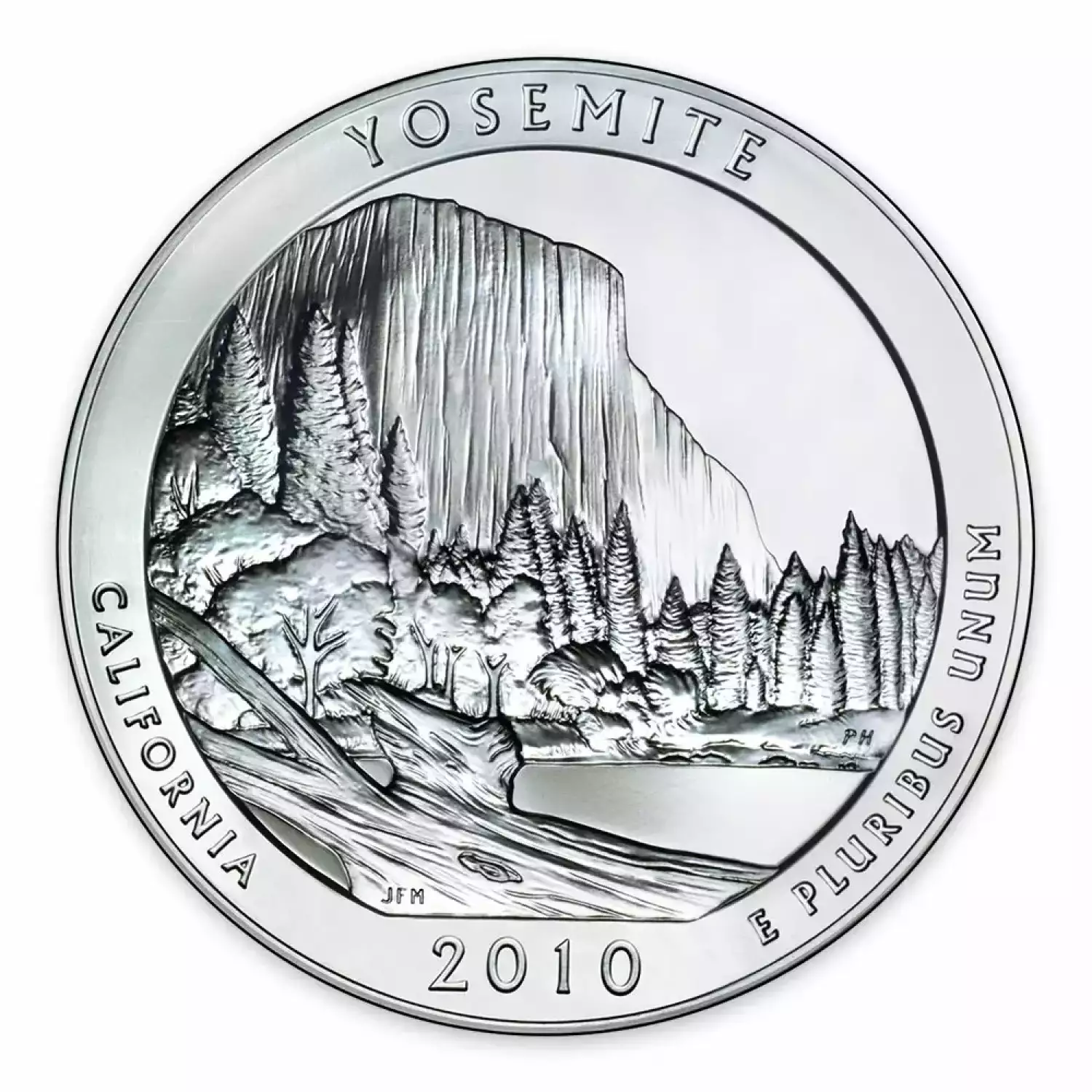 Since 2010, the US Mint released five silver America the Beautiful coins annually. The 5oz silver coins will be complete in 2021, each representing a historical monument or a treasured national park. These bullion coins were introduced following the success of the state quarter program.Yosemite National Park is an American national park located in the western Sierra Nevada of Central California, bounded on the southeast by Sierra National Forest and on the northwest by Stanislaus National Forest.