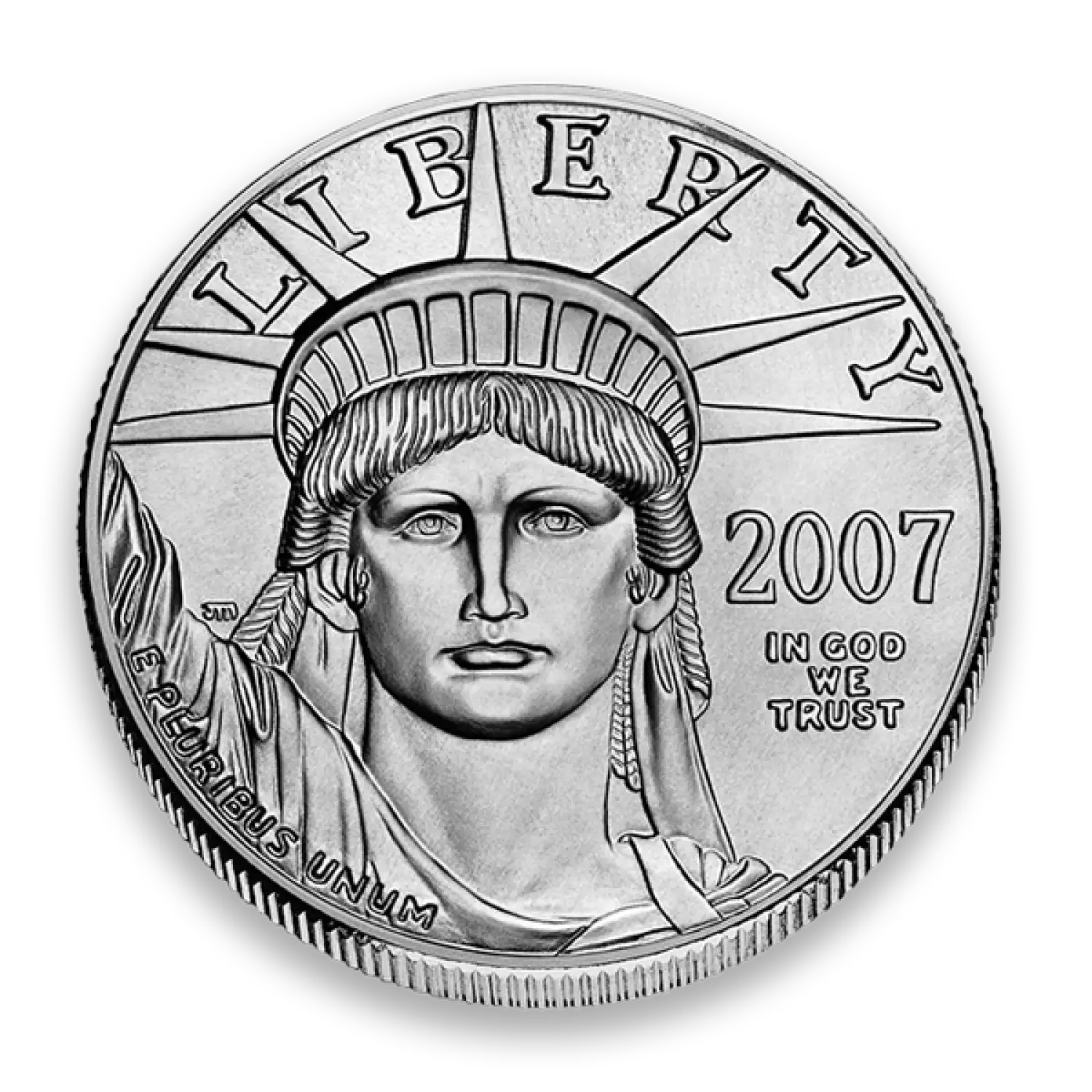 The American Eagle coin series is regarded as the diverse, most popular around the globe. Each 2007 1 oz American Platinum Eagle contains 1 oz of .9995 fine platinum. The Obverse of the coin portrays Lady Liberty from the neck up in her signature crown. The Reverse of the coin depicts two of the most beloved American icons: the Statue of Liberty and the bald eagle.