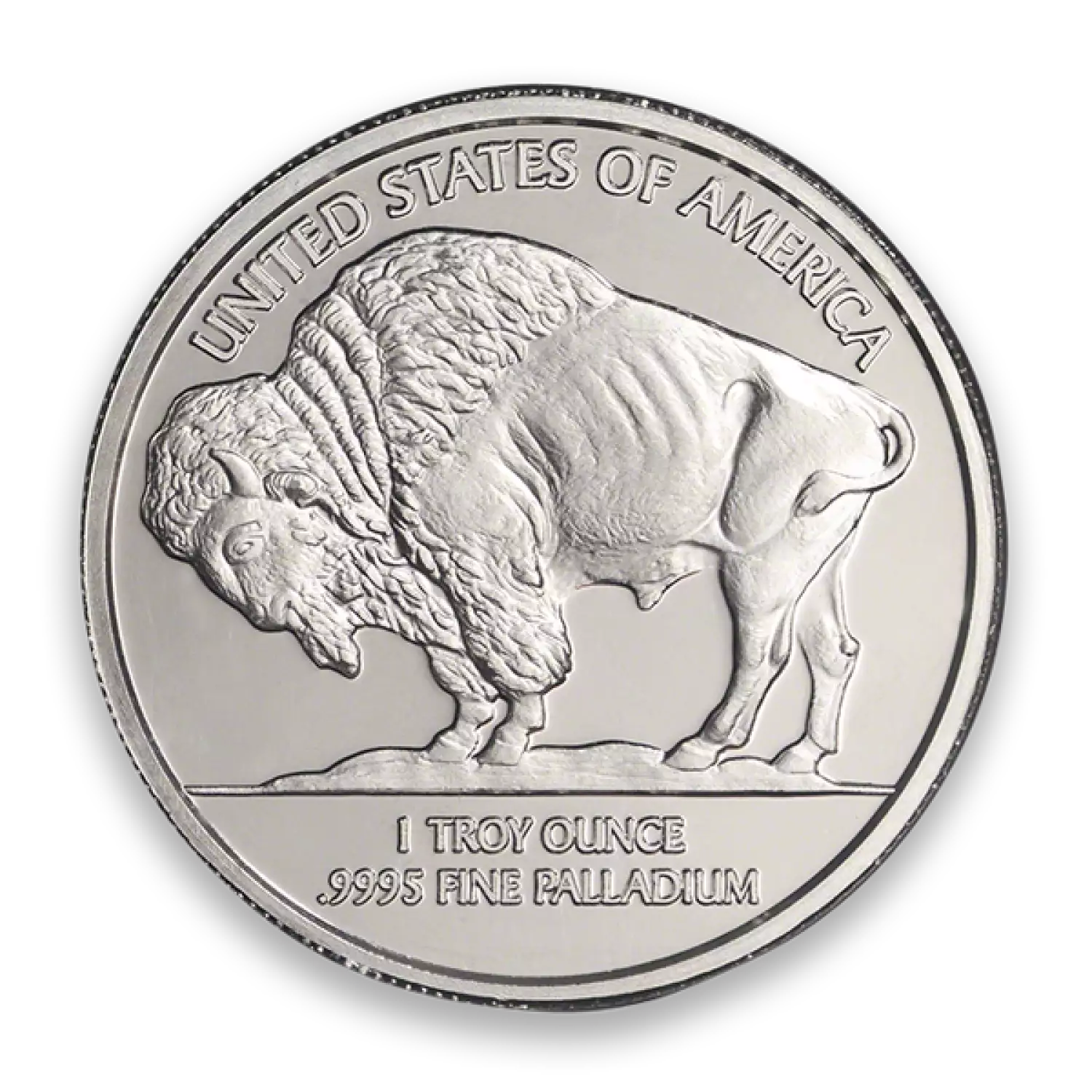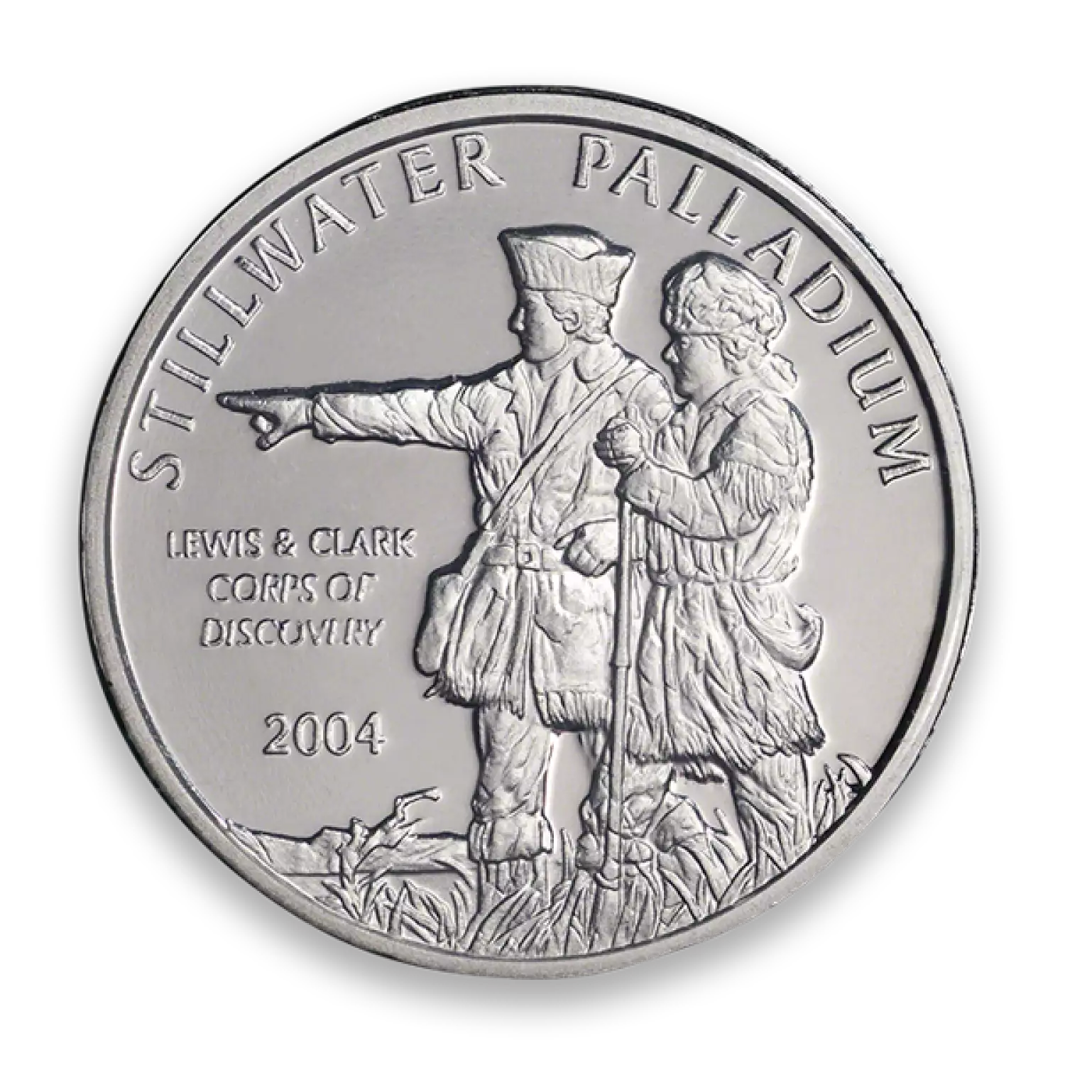 The Johnson Matthey / Stillwater mining palladium round is a unique way to invest in palladium. Stillwater Mining is the largest producer of both palladium and platinum in the US with its production of each precious metals primarily coming from the stillwater reef area in Montana. To commemorate the discovery of the west, Stillwater created and iconic design with Lewis and Clark on the obverse of the palladium round and a bison on the reverse. The Johnson Matthey 1 oz palladium round is stamped with its fineness of 999.5, meaning it is guaranteed to be at least 999.5/1000 pure palladium and its weight of 1 troy ounce palladium.
