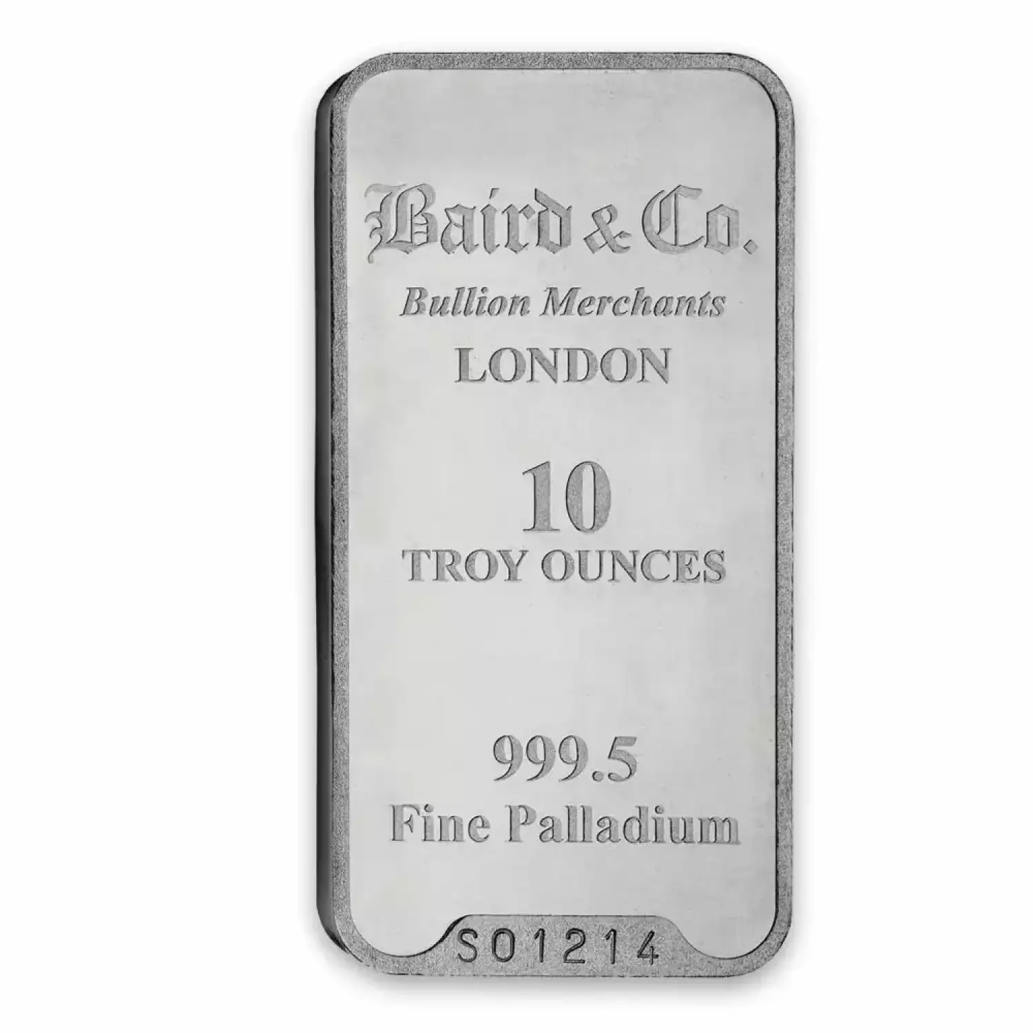 The most popular sizes when you buy palladium are 1oz, 10oz, and 100oz. Many other sizes exist but those palladium bar sizes are not as popular. Each 10oz Baird & Co Palladium Minted Bar contains 10 troy ouncesof .9995 fine palladium.