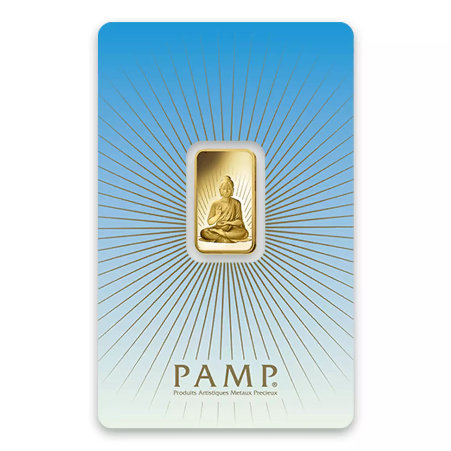 The Buddha is celebrated as a symbol for the Buddhist religion. The 5 g PAMP Gold Bar - Buddha exemplifies beauty through the depiction of classic religious symbols and contains 5 grams of .9999 fine Gold. These bullion bars are great as a gift or personal investment!