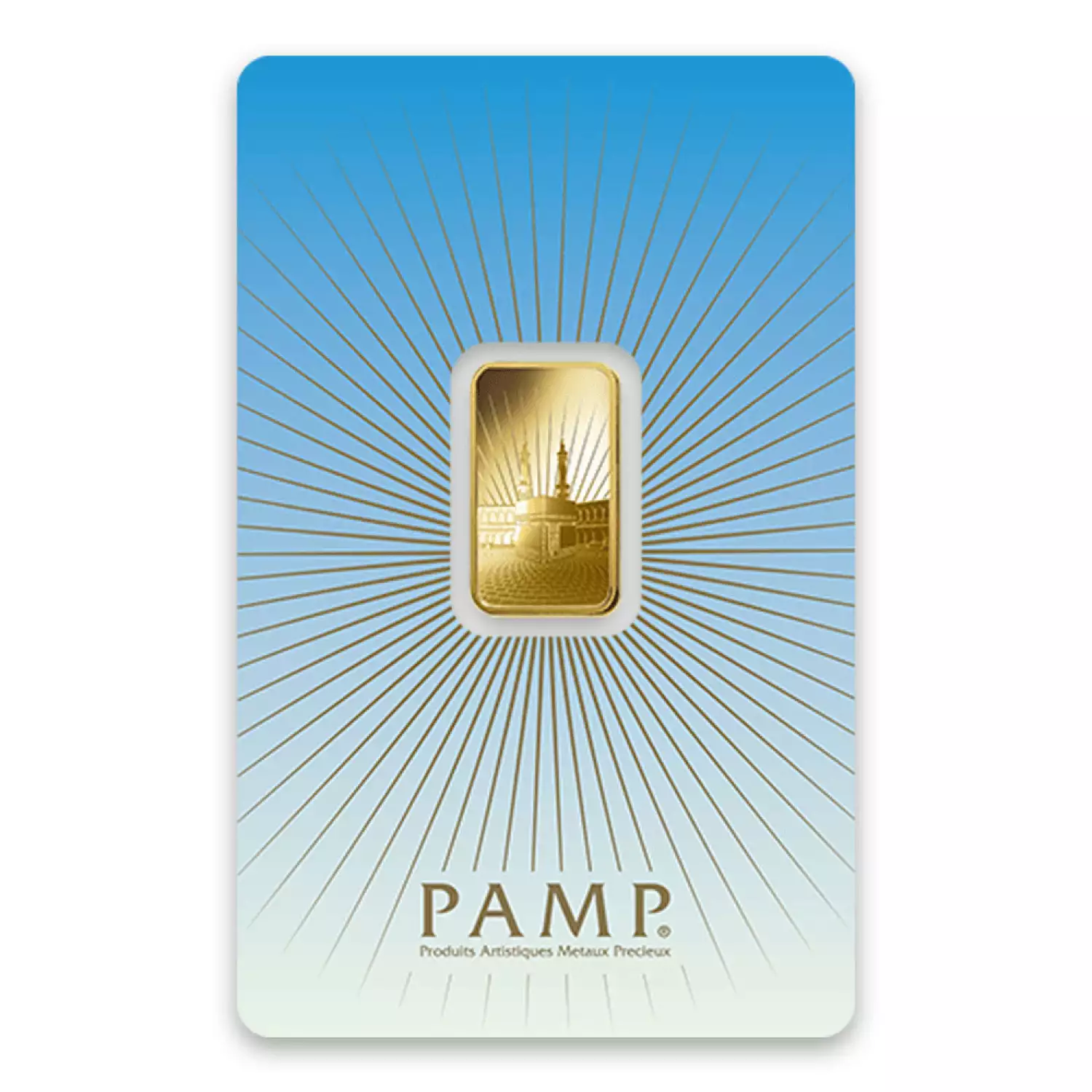 Ka `Bah. Mecca Gold Bar is one of the bars released as part of the PAMP Gold Series. The Obverse of the gold bar depicts a depiction of the Ka'bahsmall shrine in Ka'bah, Mecca. The Reverse features the PAMP Suisse logo, weight and purity along with a unique serial number.