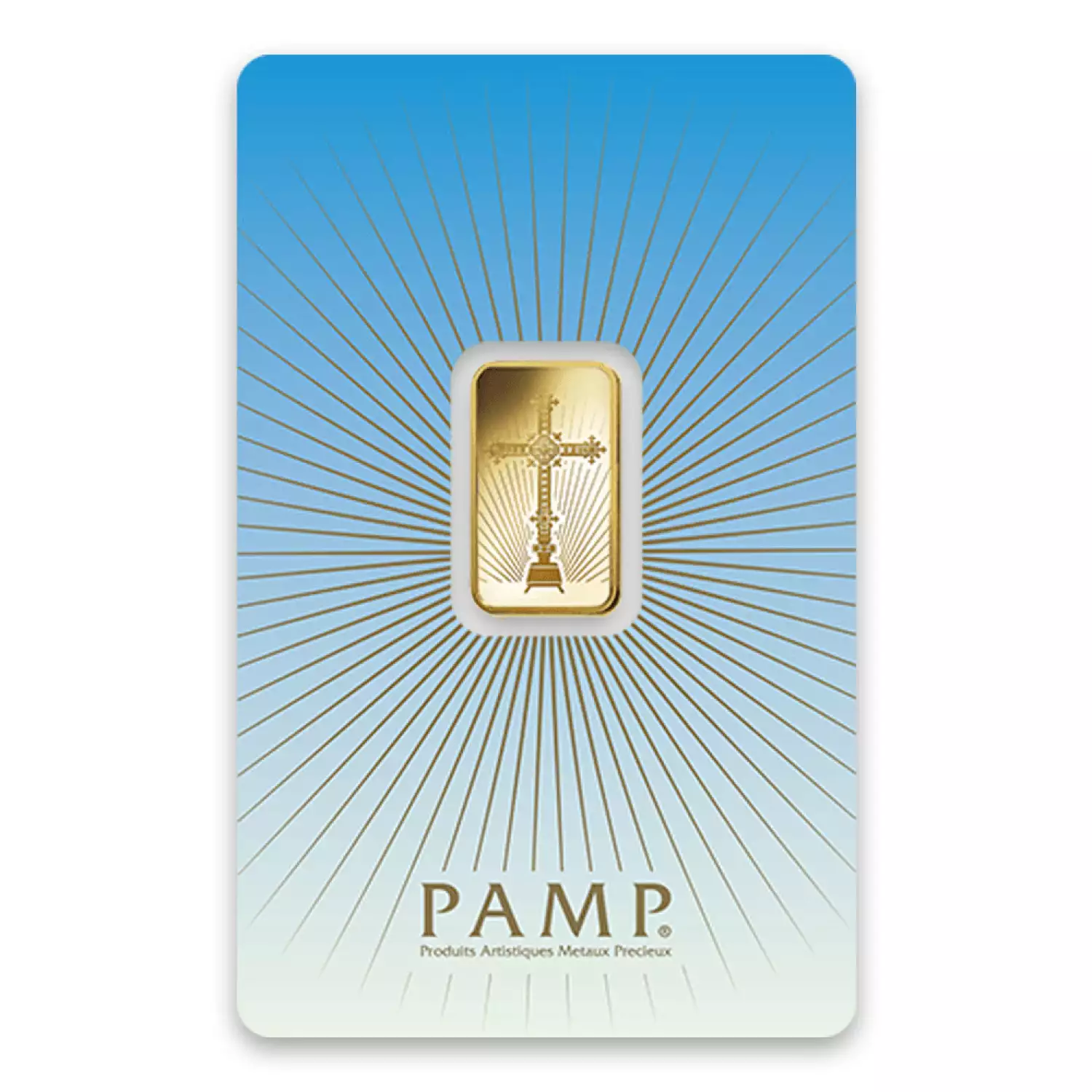 Buy the high-quality 5 grams PAMP Gold Bar - Romanesque Cross today from us online! The current gold price is updated on our website every minute.