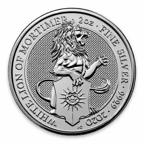 The 2020 2oz Britain Silver Queen's Beast: The White Lion of Mortimer is the first release in an exciting new 10 coin series. The Britain Queen's Beasts celebrate the British Monarch and the centuries of fascinating heraldry. This strikingly beautiful silver coin contains 1 oz of .9999 fine silver.This two ounce silver bullion coin is the sixth addition to The Queen’s Beasts bullion range. Inspired by ancient symbols of power and identity, the range brings to life the ten imposing statues that lined the entrance to Westminster Abbey in 1953 at the coronation of Her Majesty The Queen.