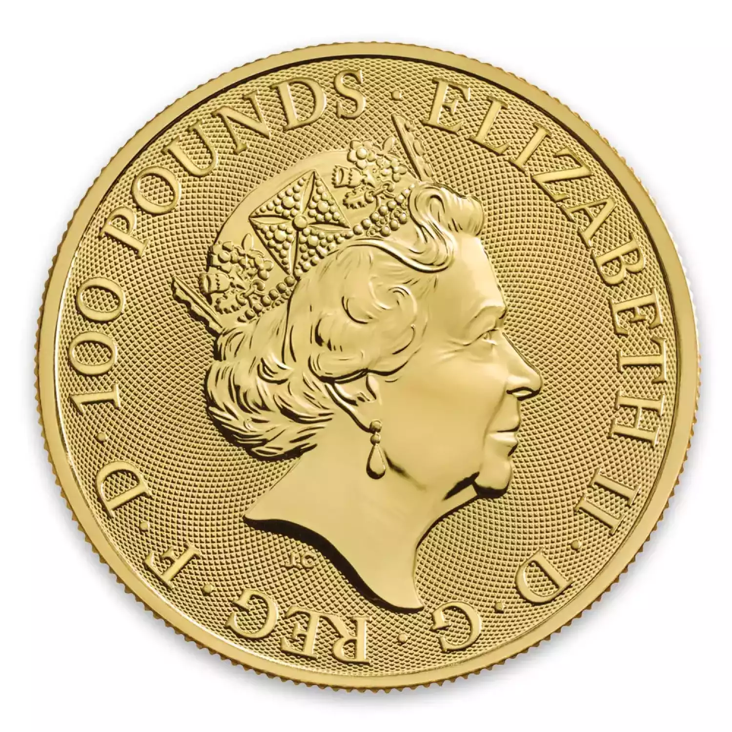 The design of the 2020 1oz Royal Arms Gold Coin it’s a reinterpretation by Timothy Noad and it’s based on the original design made by Eric Sewell in 1983. The reverse depicts a crowned shield along with the Lion of England on the left side and Unicorn of Scotland on the right side. The obverse displays Queen Elizabeth II along with the face value of 100 pounds.