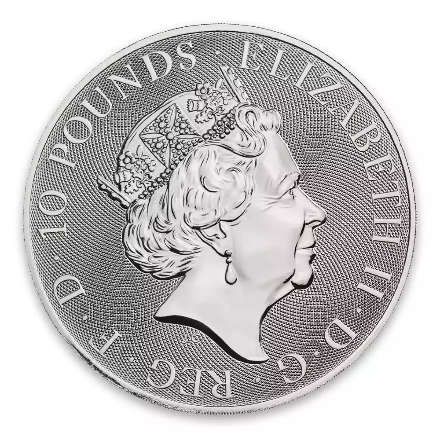 The obverse displays Queen Elizabeth II along with the face value of ten pounds.