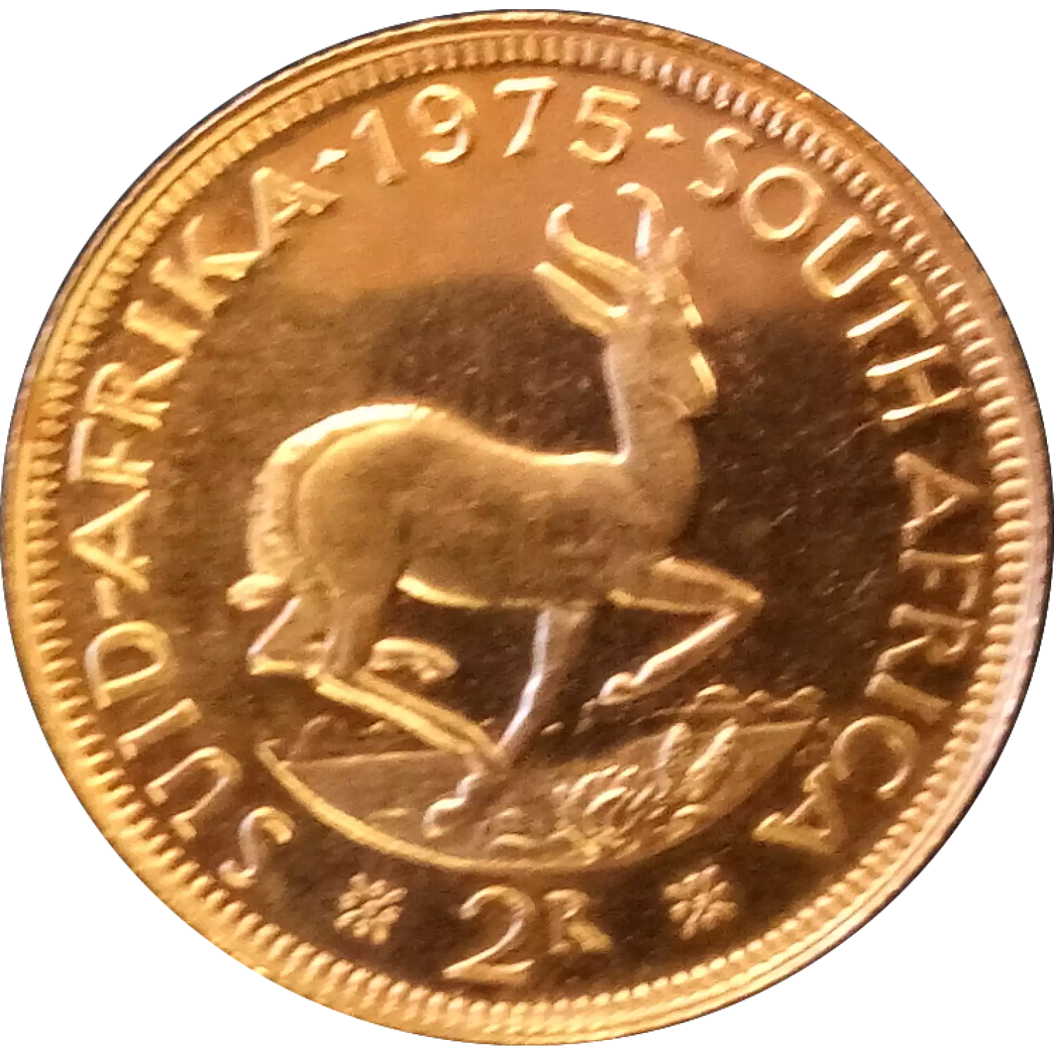 Containing .2354 of an ounce of Gold and with a pleasing design, these 2 Rand coins are South Africa's equivalent of the British Sovereign