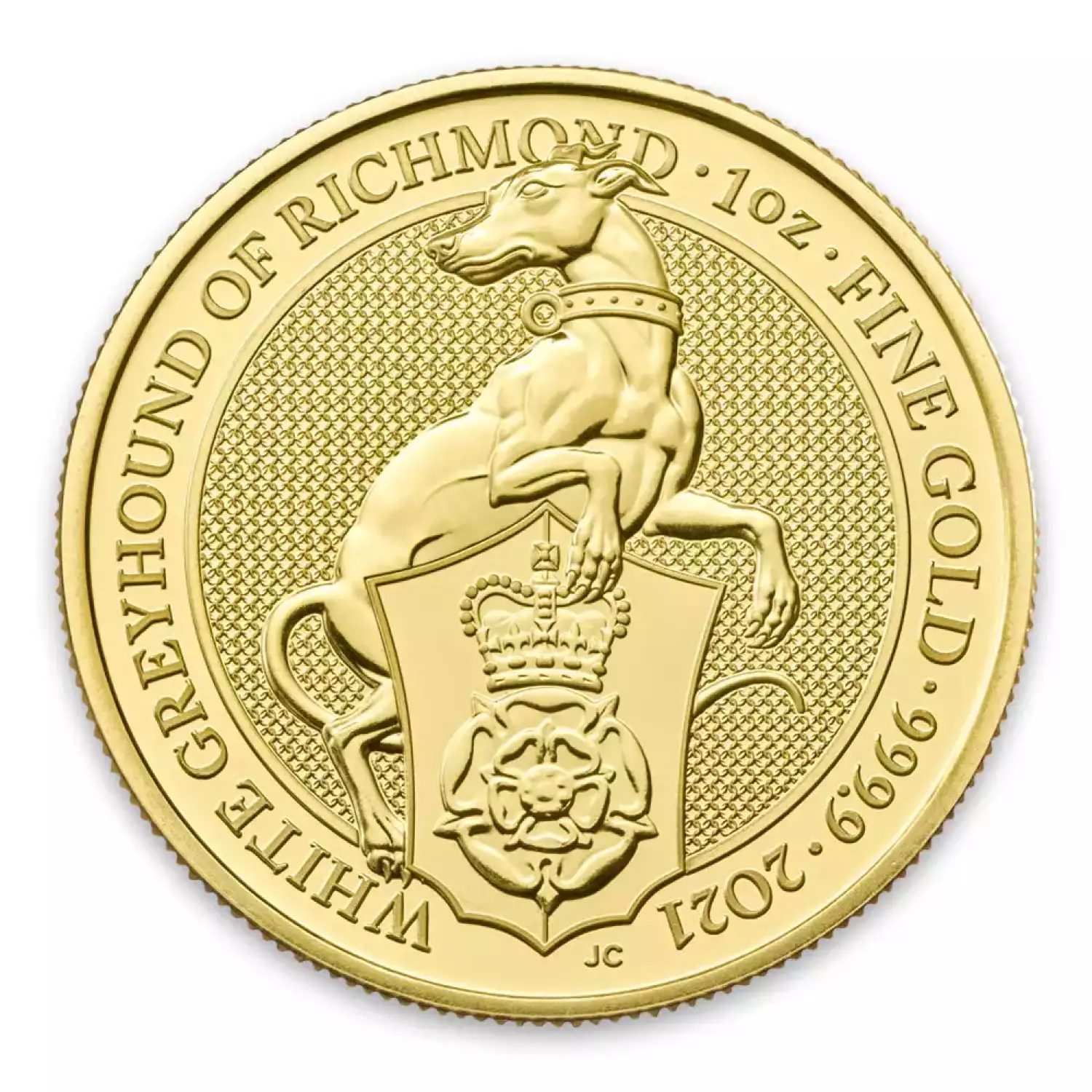 Get the stunning 2021 1oz Gold Britain Queen's Beast: The White Greyhound of Richmond today from us!