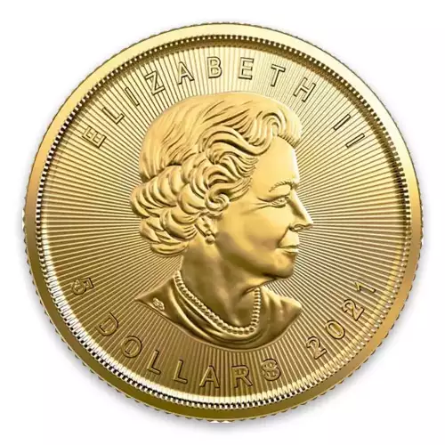 The 2021 1/10 oz Canadian Maple Leaf gold coin is the 39th release of the 1/10 oz Canadian Gold Maple Leaf coin. It contains 1/10 oz of .9999 fine Gold. The weight and purity of this coin is guaranteed by the Royal Canadian Mint. These coins are highly popular among investors and collectors.