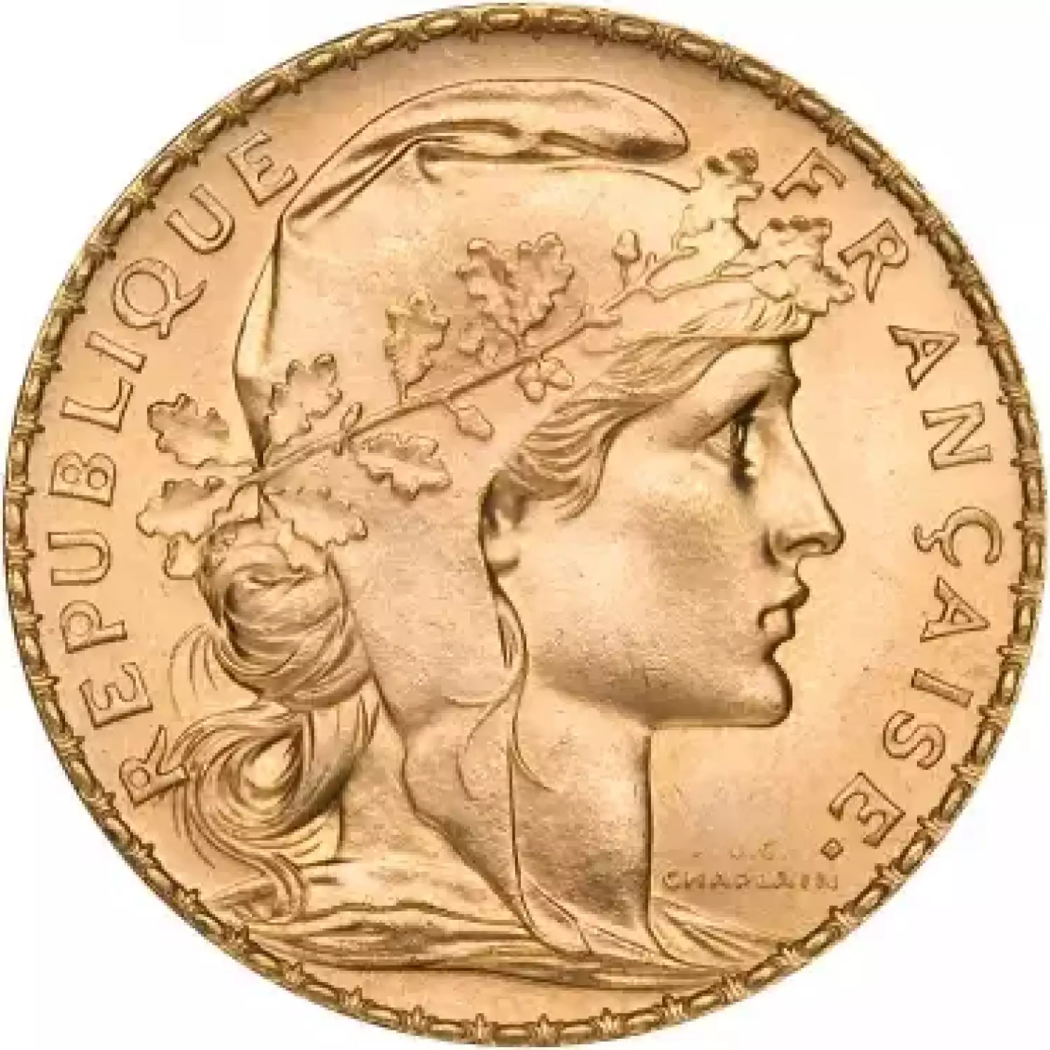 The French 20 Gold Franc is a classic gold coin that is still popular among gold investors. This coin rarely carries any numismatic value and most coins trade for the value of the gold inside of them. Made of 90% gold and 10% copper, these coins were used in normal circulation throughout history.