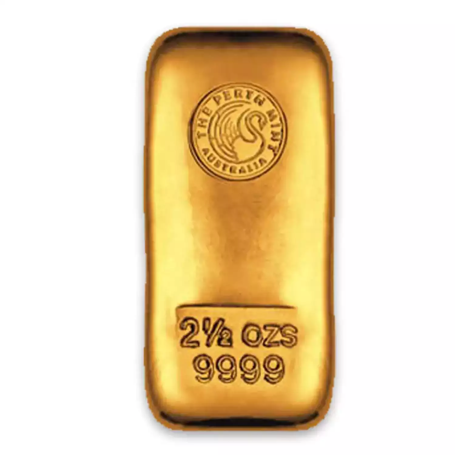 Australian Perth Mint Gold Bars are highly respected gold bullion bar around the globe. Each 2.5 oz Australian Perth Mintgold bar - cast contains 2.5 Troy Ounces of .9999 fine gold. When you buy gold bars, you need to consider both the premium of the gold bar above the gold price as well as the spread on that gold bar. The spread is the difference between the price you pay to buy gold and the price you get when you sell gold for any particular gold bar.