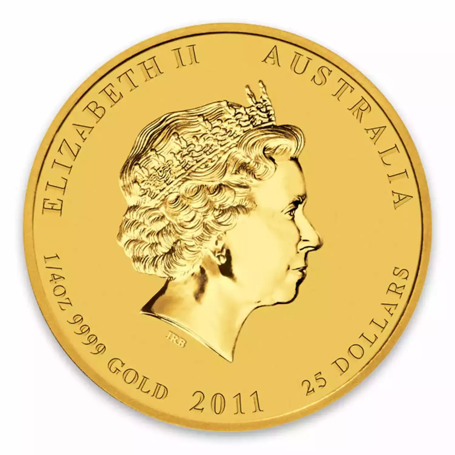 The beautiful designs of Australian Lunar Gold Coins have made them attractive among investors and collectors. The 2011 ¼ oz Australian Perth Mint Gold Lunar II: Year of the Rabbit is composed of 1/4 oz of .9999 pure Gold. This coin is minted by the Perth Mint and guaranteed by the government of Australia.