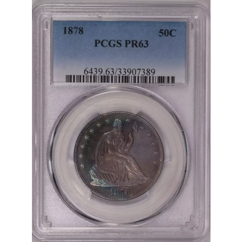 1878 PROOF SEATED LIBERTY HALF DOLLAR PCGS PR63 RAINBOW TONING!