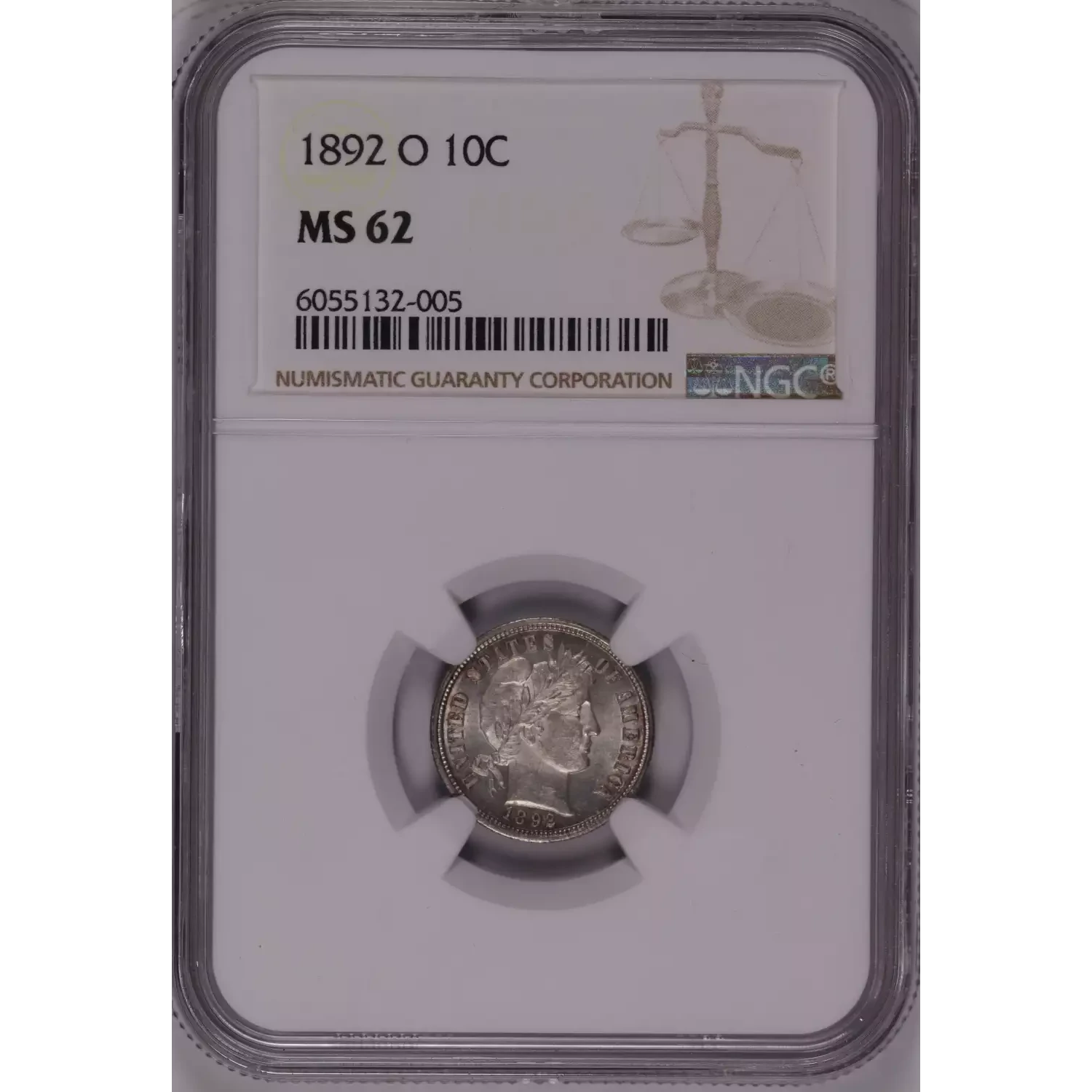 1892-O Dimes Barber or Liberty Head NGC MS-62