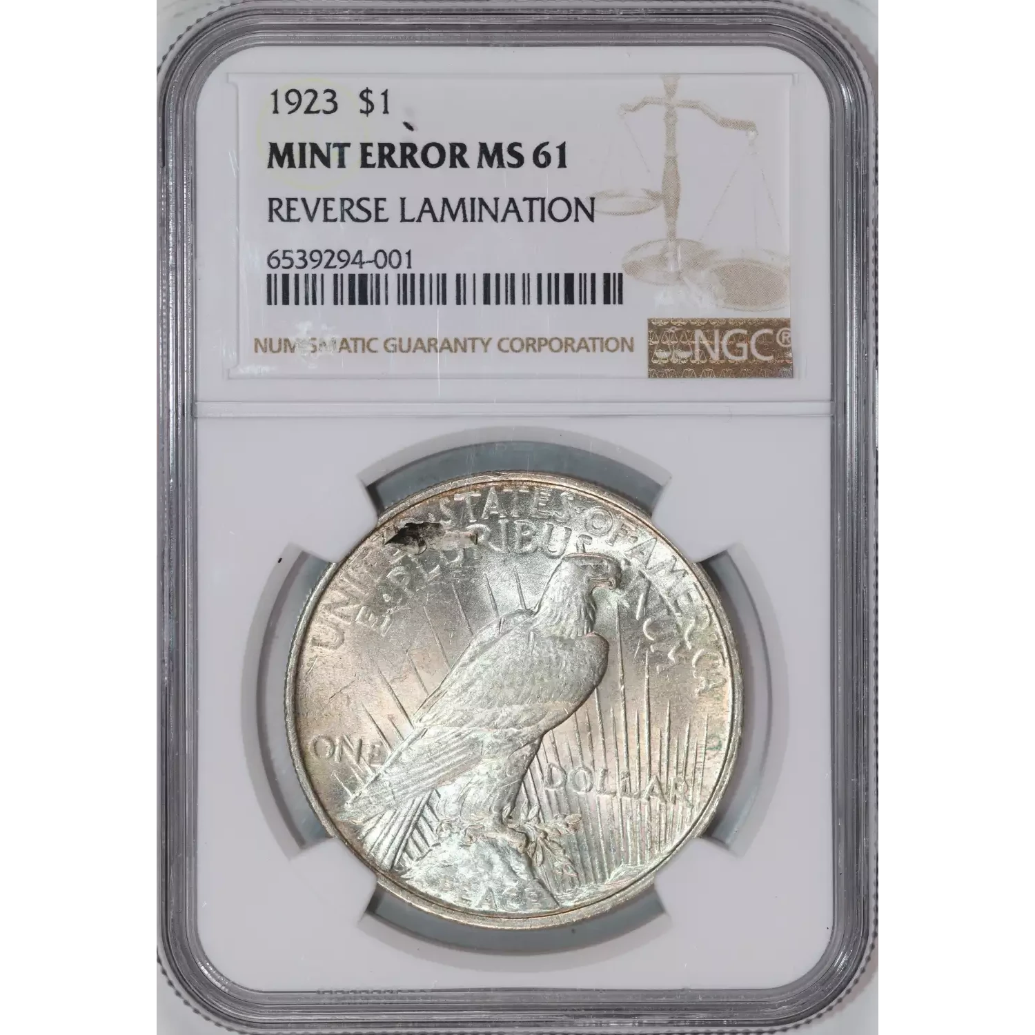 1923 PEACE DOLLAR "REVERSE LAMINATION" MINT ERROR NGC MS61