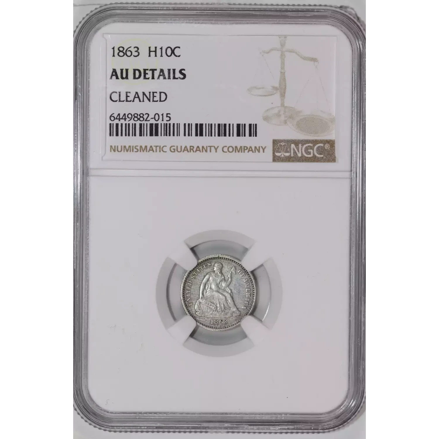 1863 SEATED LIBERTY HALF DIME NGC AU DETAILS