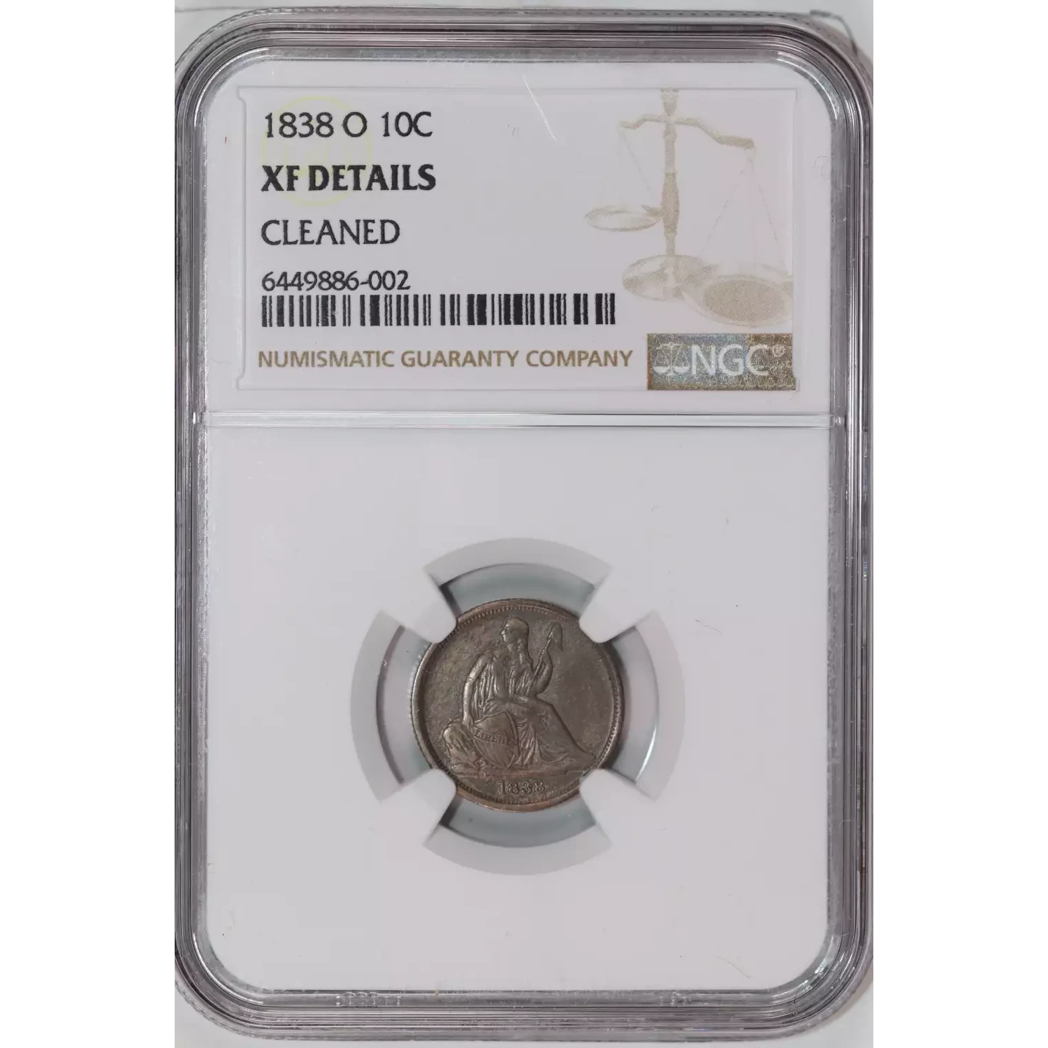 1838-O Liberty Seated Dime NGC XF Details