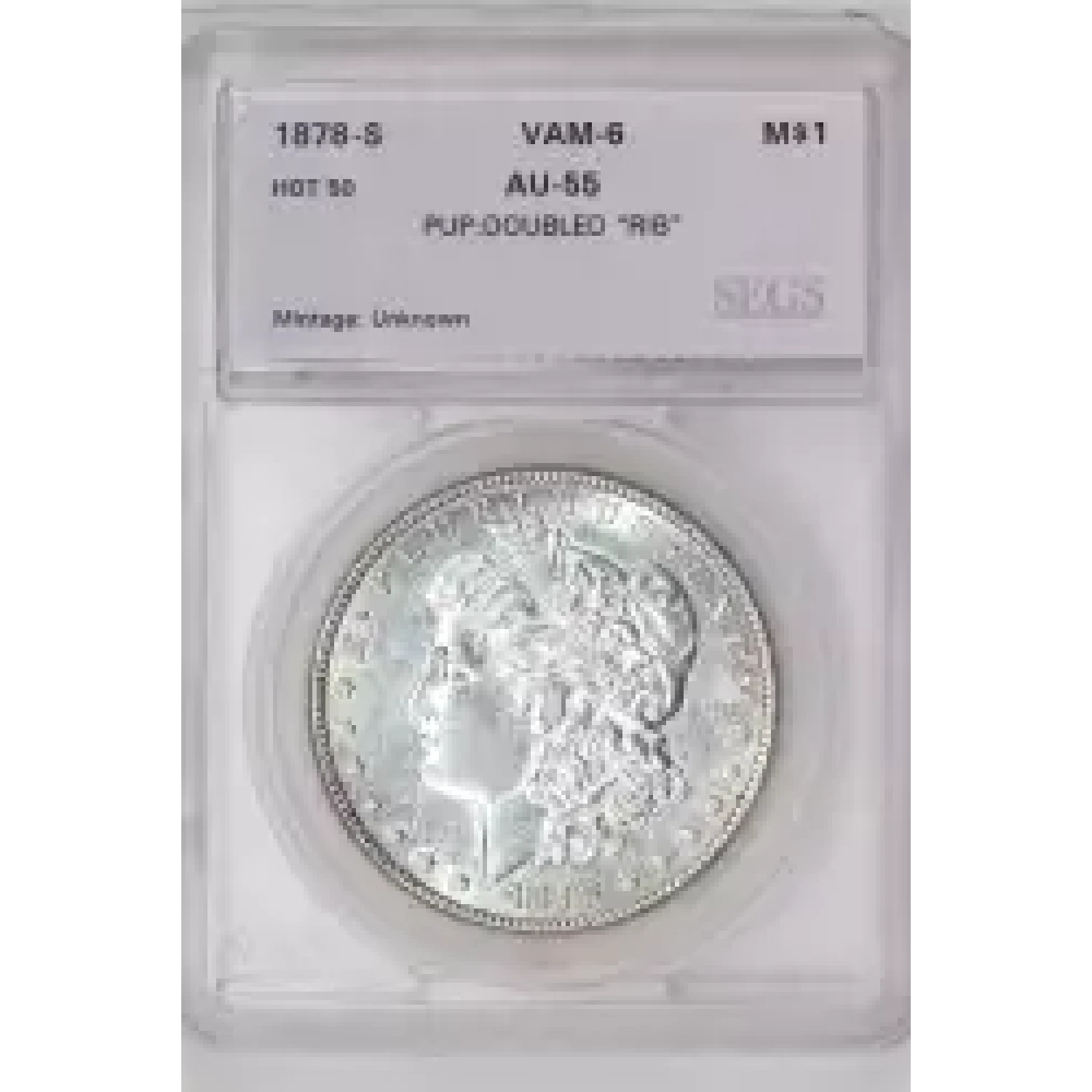1878-S VAM-6 "DOUBLED RIB" HOT 50 MORGAN DOLLAR RAW CHOICE AU++