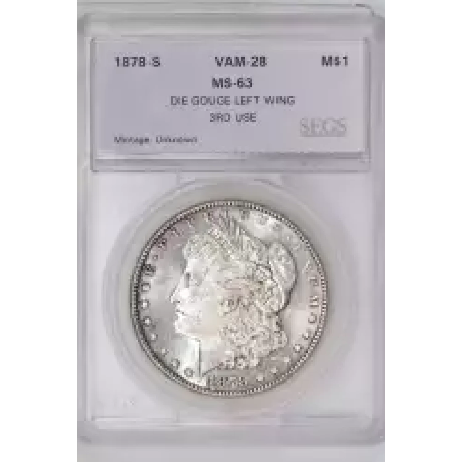 1878-S VAM-28 "DIE GOUGE LEFT WING" MORGAN DOLLAR RAW CHOICE BU