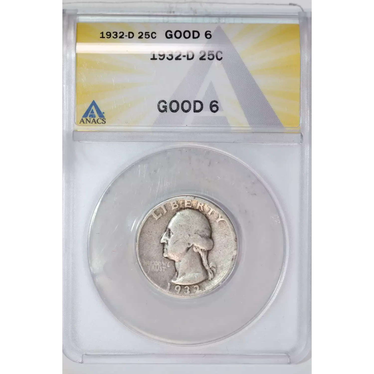 1932-D Quarter Dollars Silver Coinage ANACS G-6