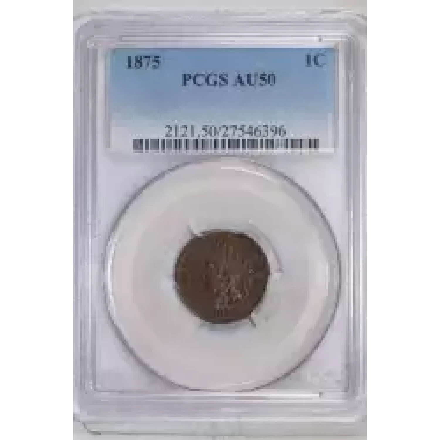 1875 Small Cents Indian Head PCGS AU-50 BN