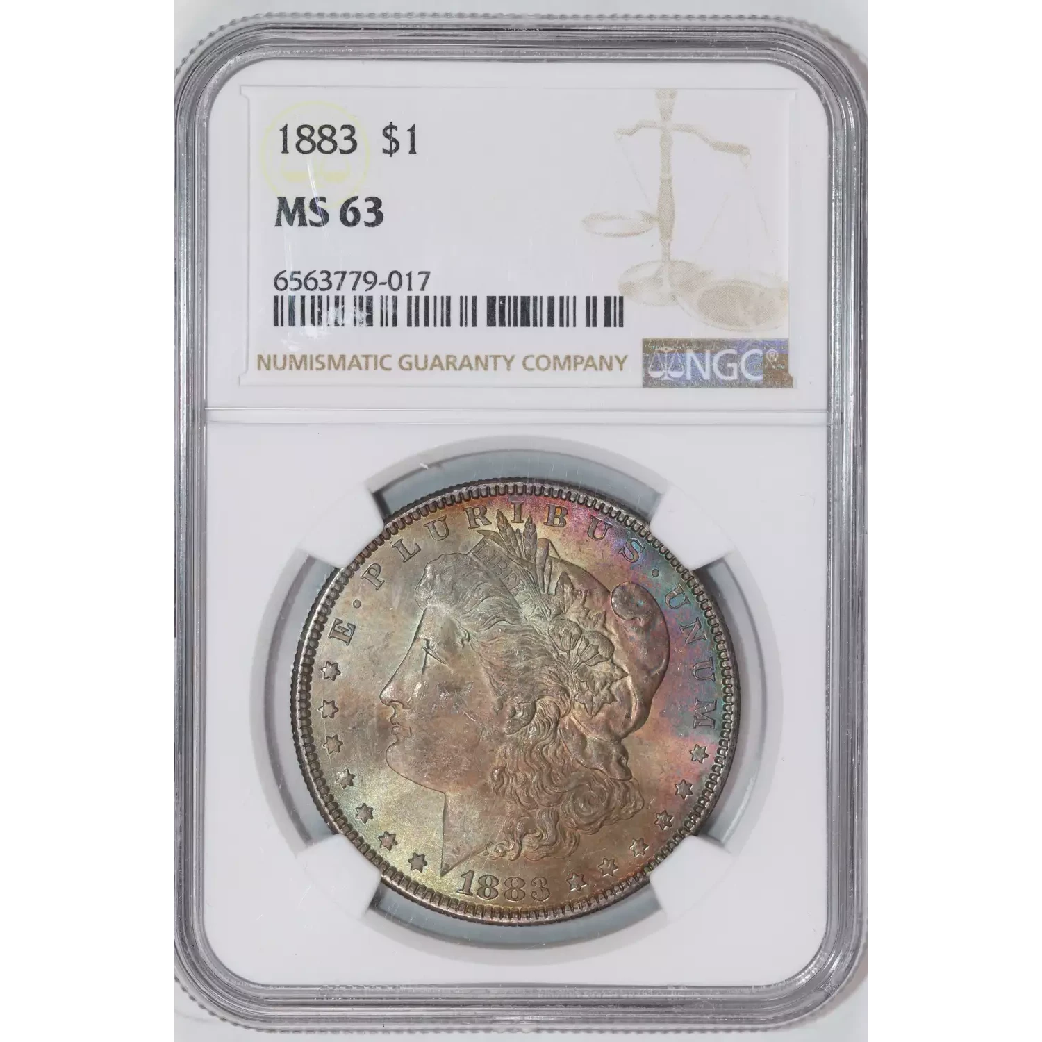 1883 MORGAN DOLLAR RAINBOW TONING NGC MS63
