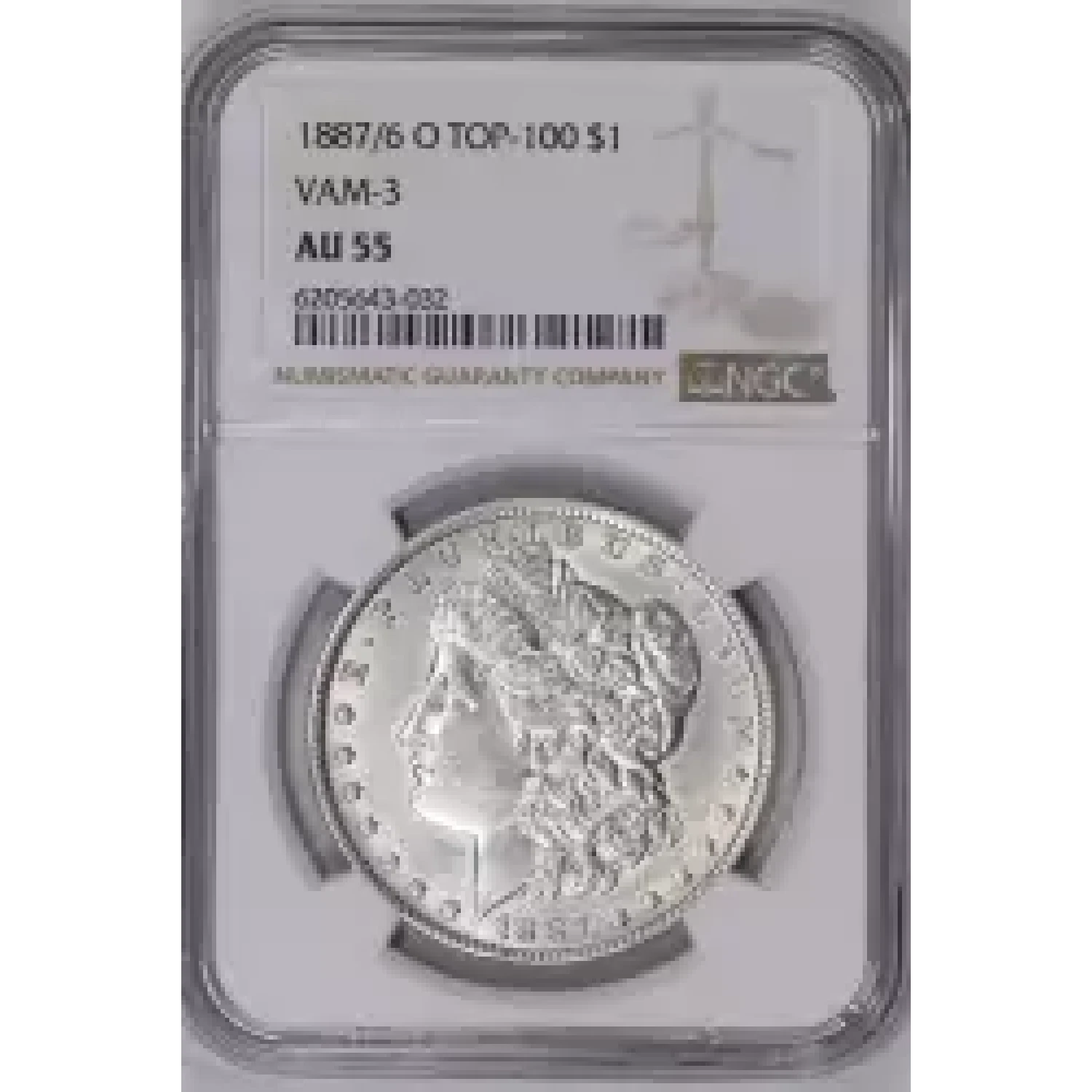 1887/6 O VAM-3 "7/6" TOP 100 MORGAN DOLLAR NGC AU55