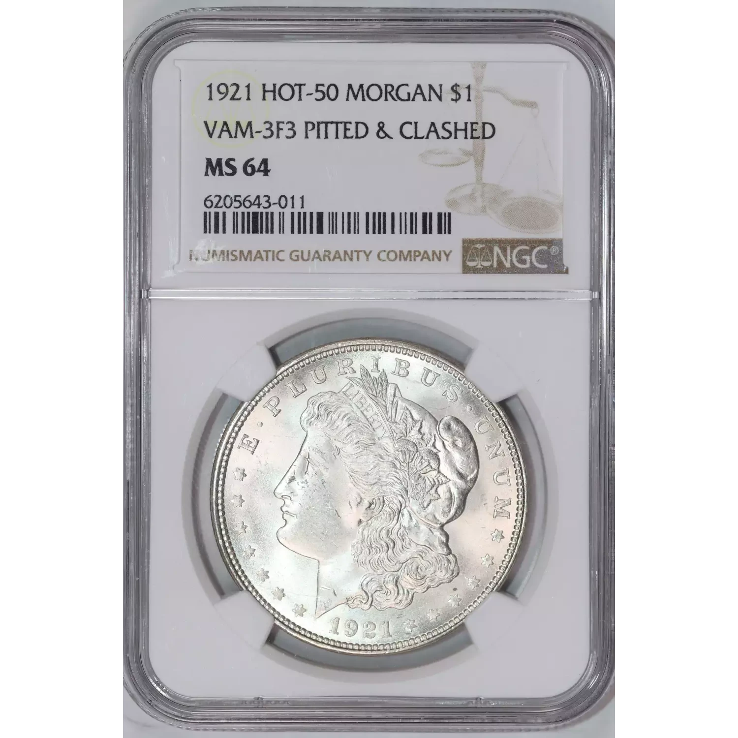 1921 Morgan Silver Dollar NGC MS-64 HOT-50 VAM-3F3 PITTED & CLASHED