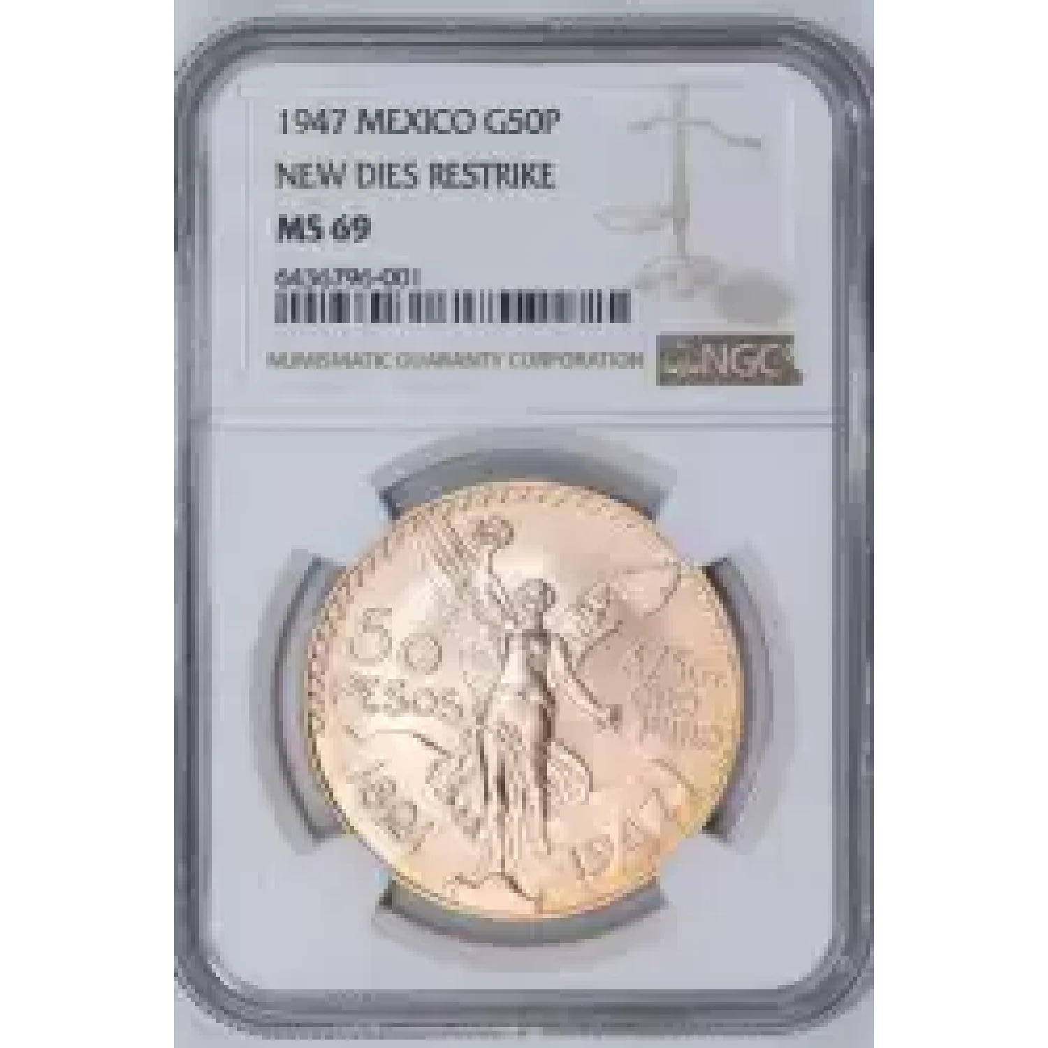 1947 MEXICO Gold 50 PESOS NGC MS-69 NEW DIES RESTRIKE