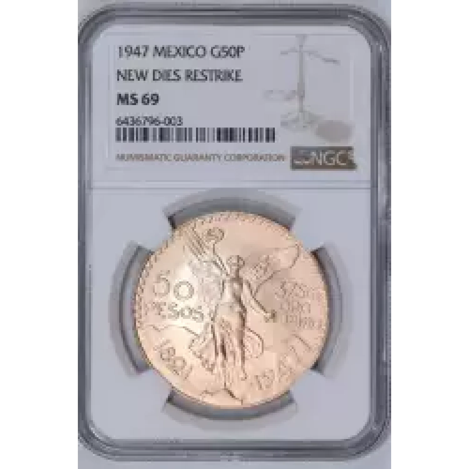 1947 MEXICO Gold 50 PESOS NGC MS-69 NEW DIES RESTRIKE