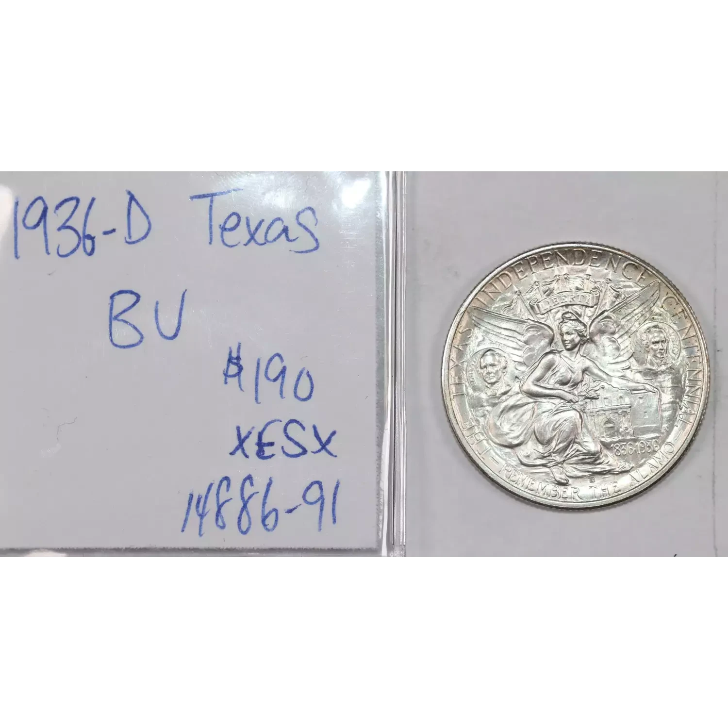 1936-D TEXAS SILVER COMMEMORATIVE HALF DOLLAR RAW BU