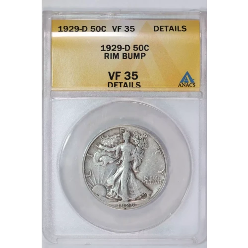 1929-D WALKING LIBERTY HALF DOLLAR ANACS VF35 DETAILS